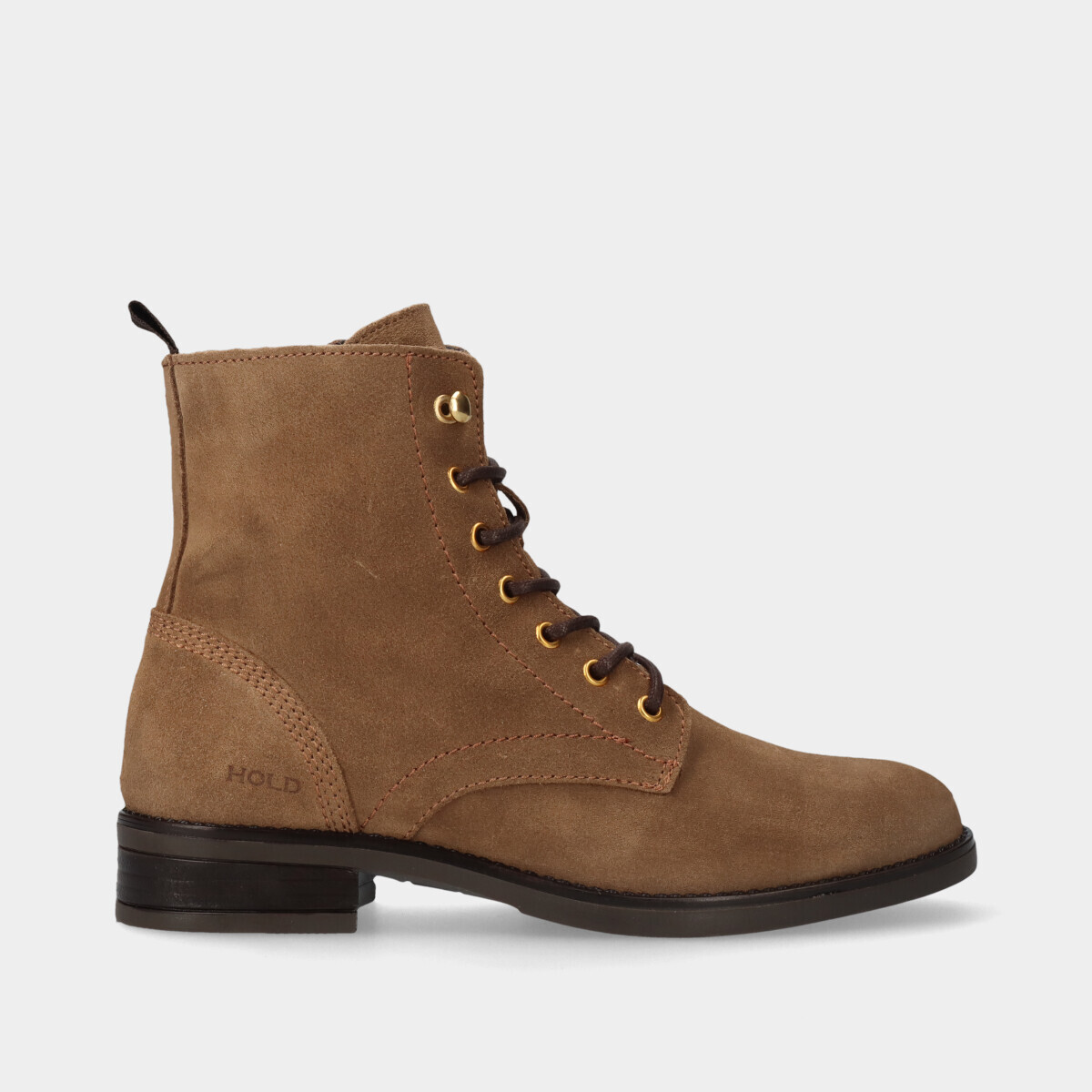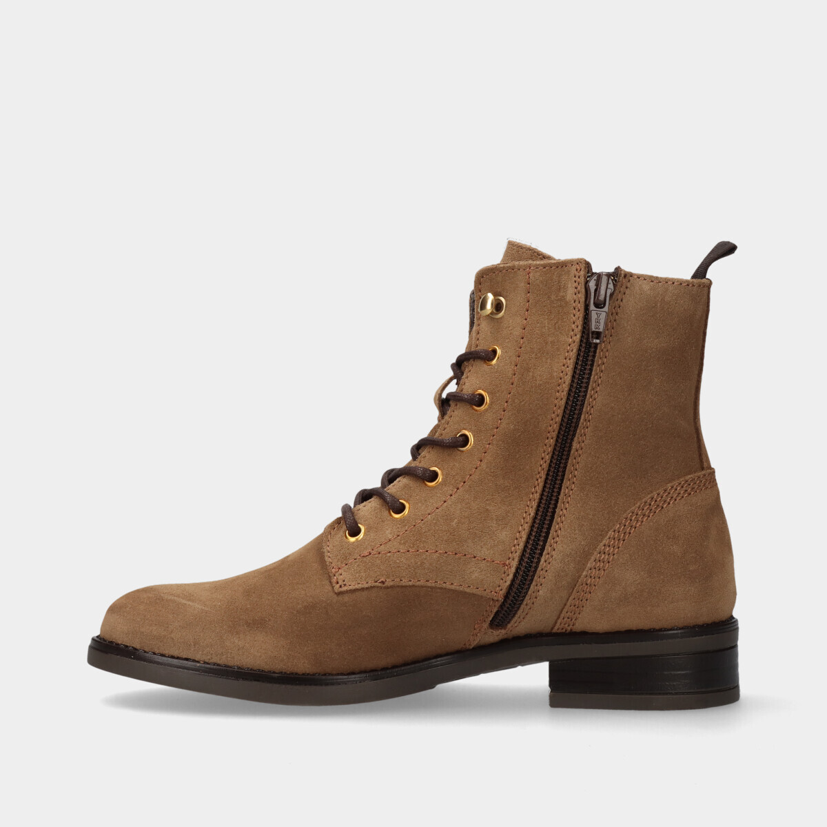 Bota na cor bege com elástico.