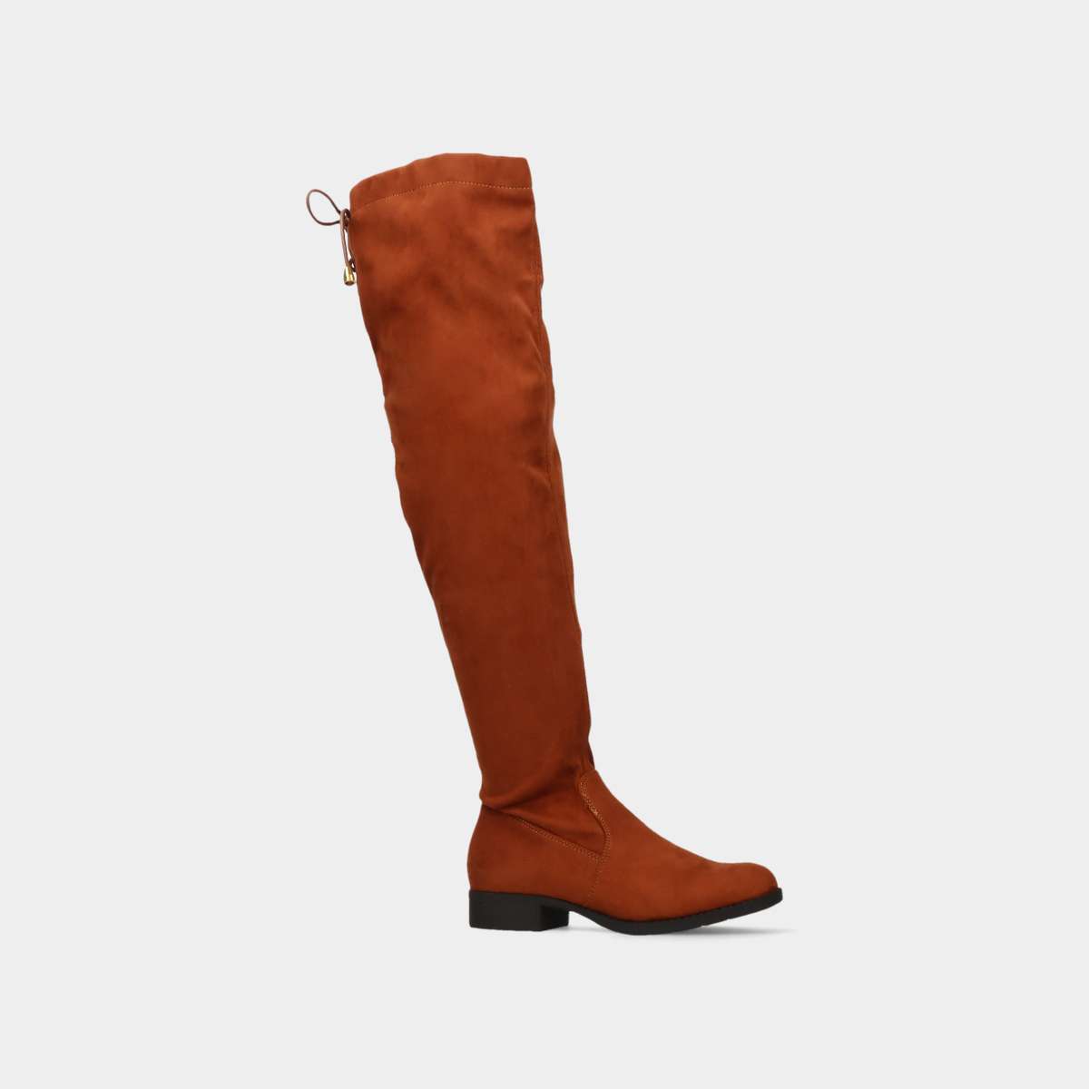 Bota feminina na cor camel com fecho e ajuste de cordão.