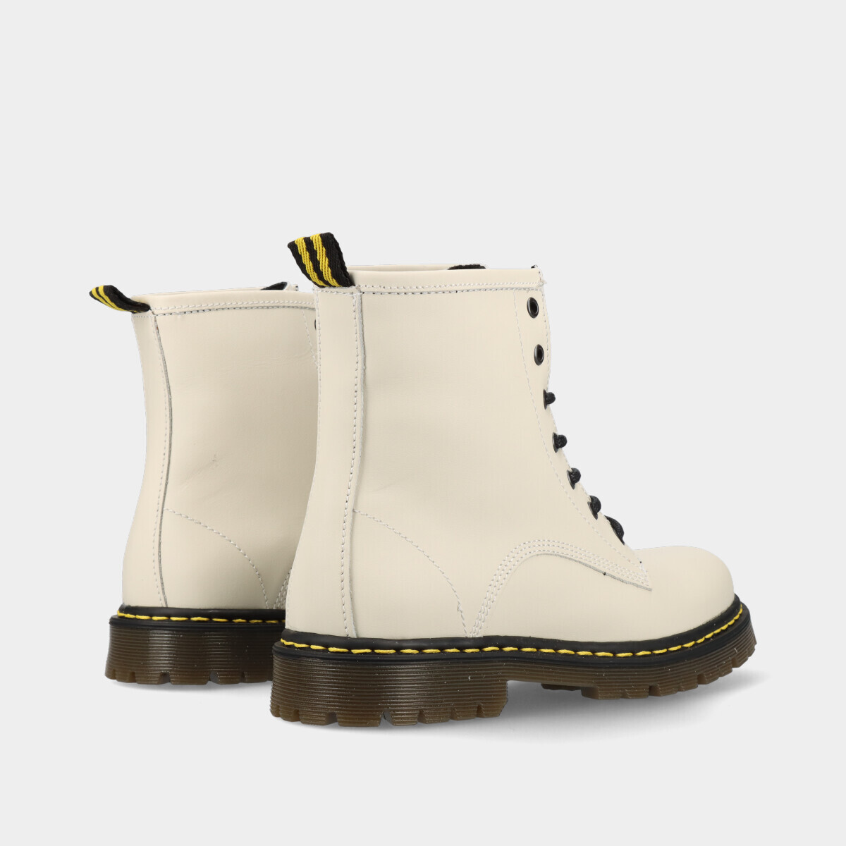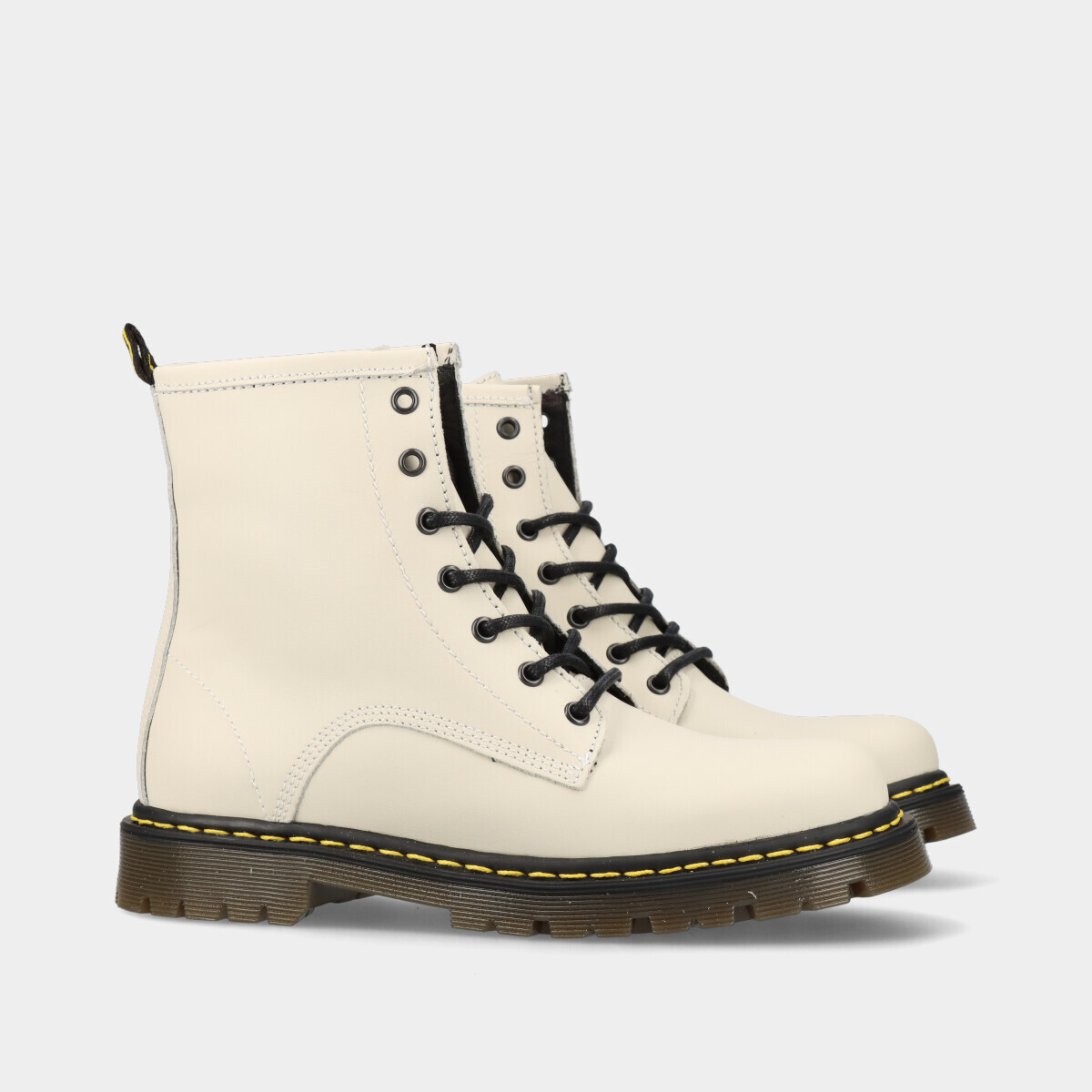 Botas em pele off-white para mulher, resistentes e confortáveis, com palmilha acolchoada e cordão.