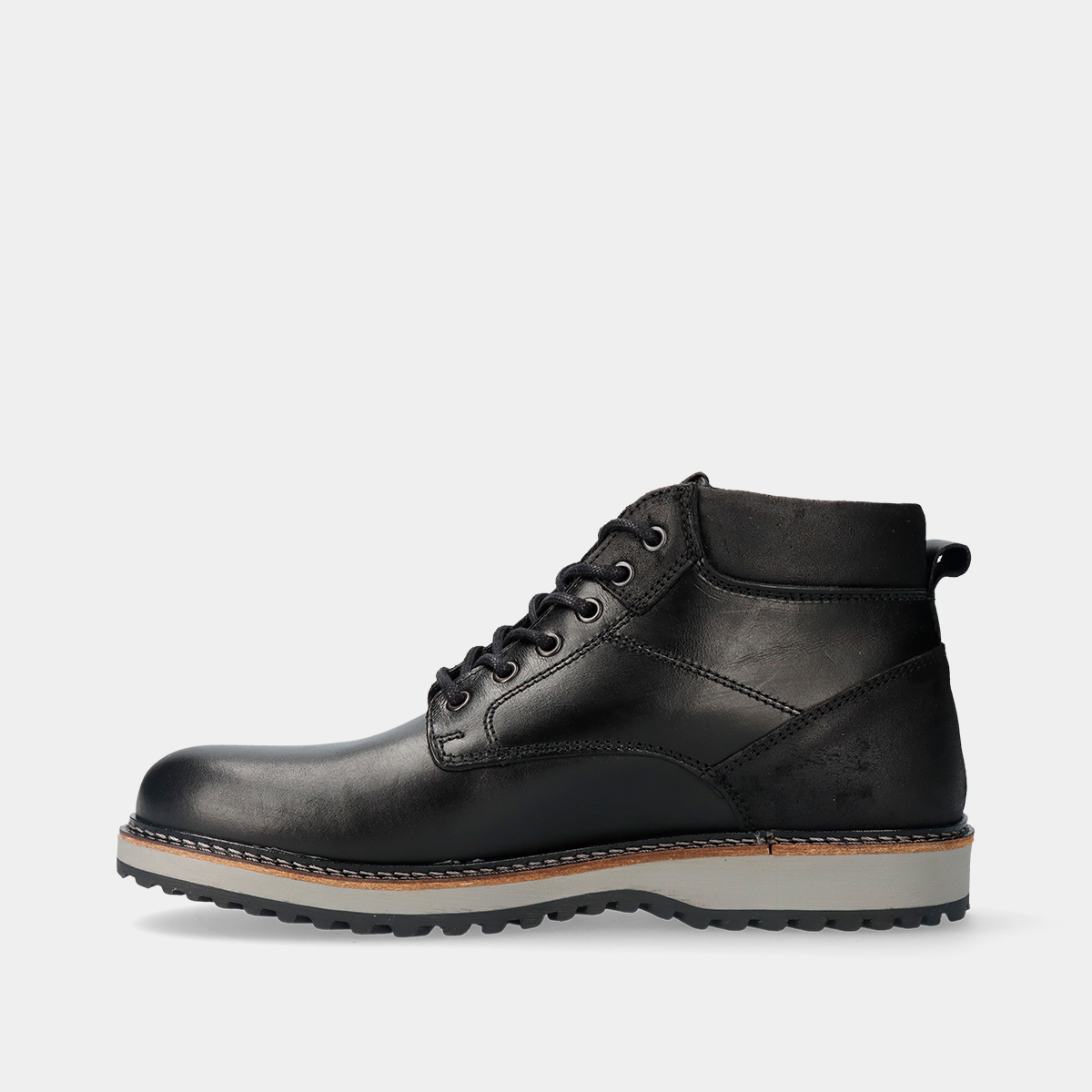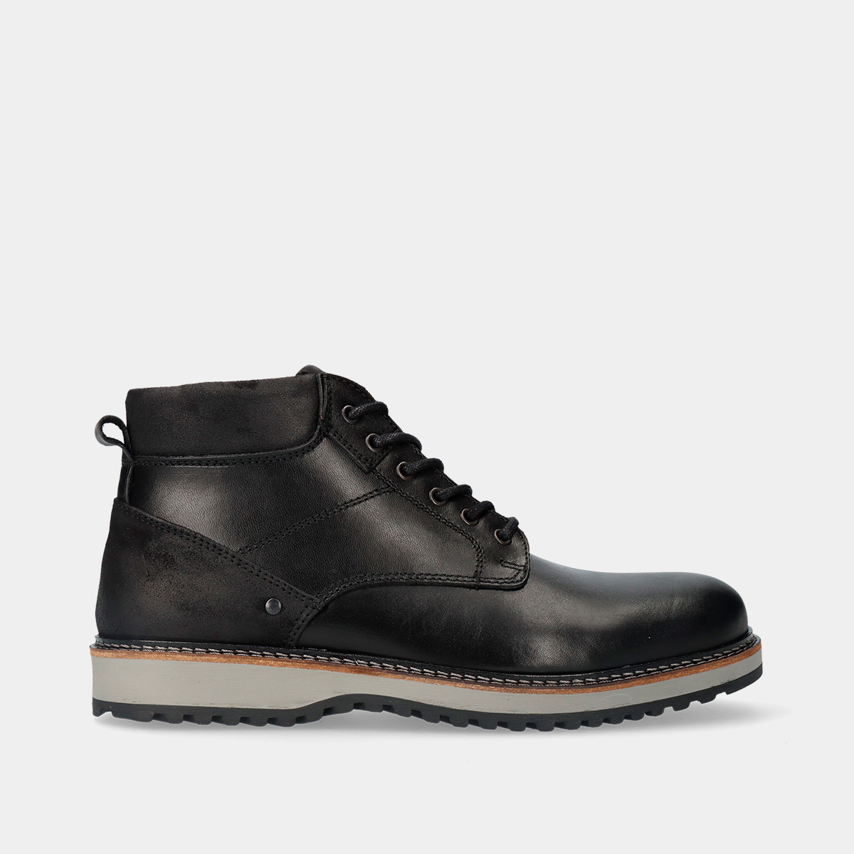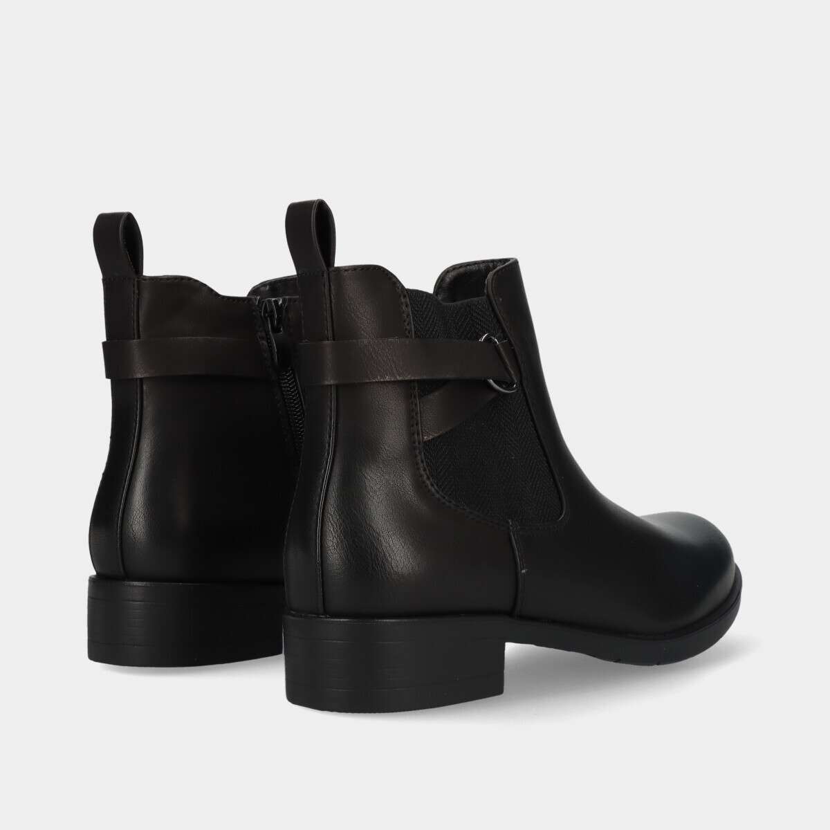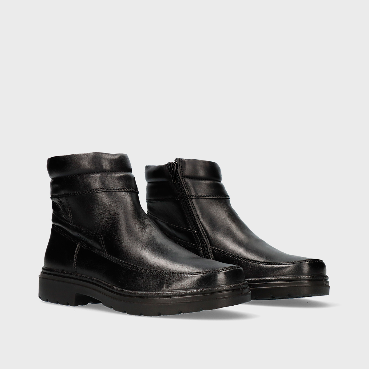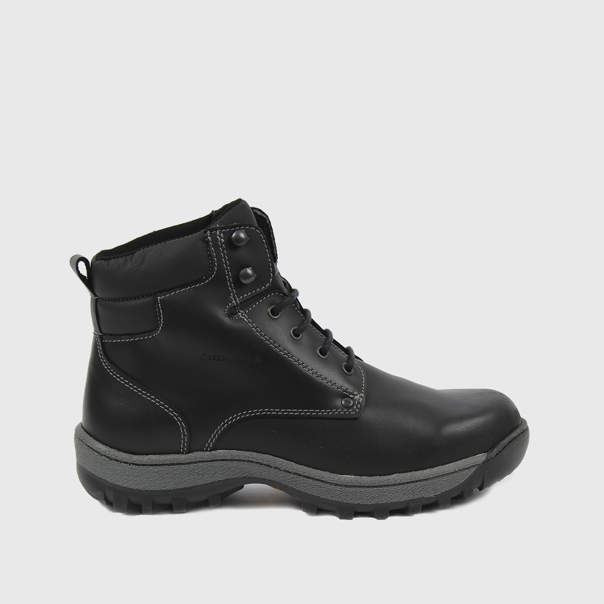 Bota na cor preta, com aplicação decorativa, forro quente e fecho lateral.