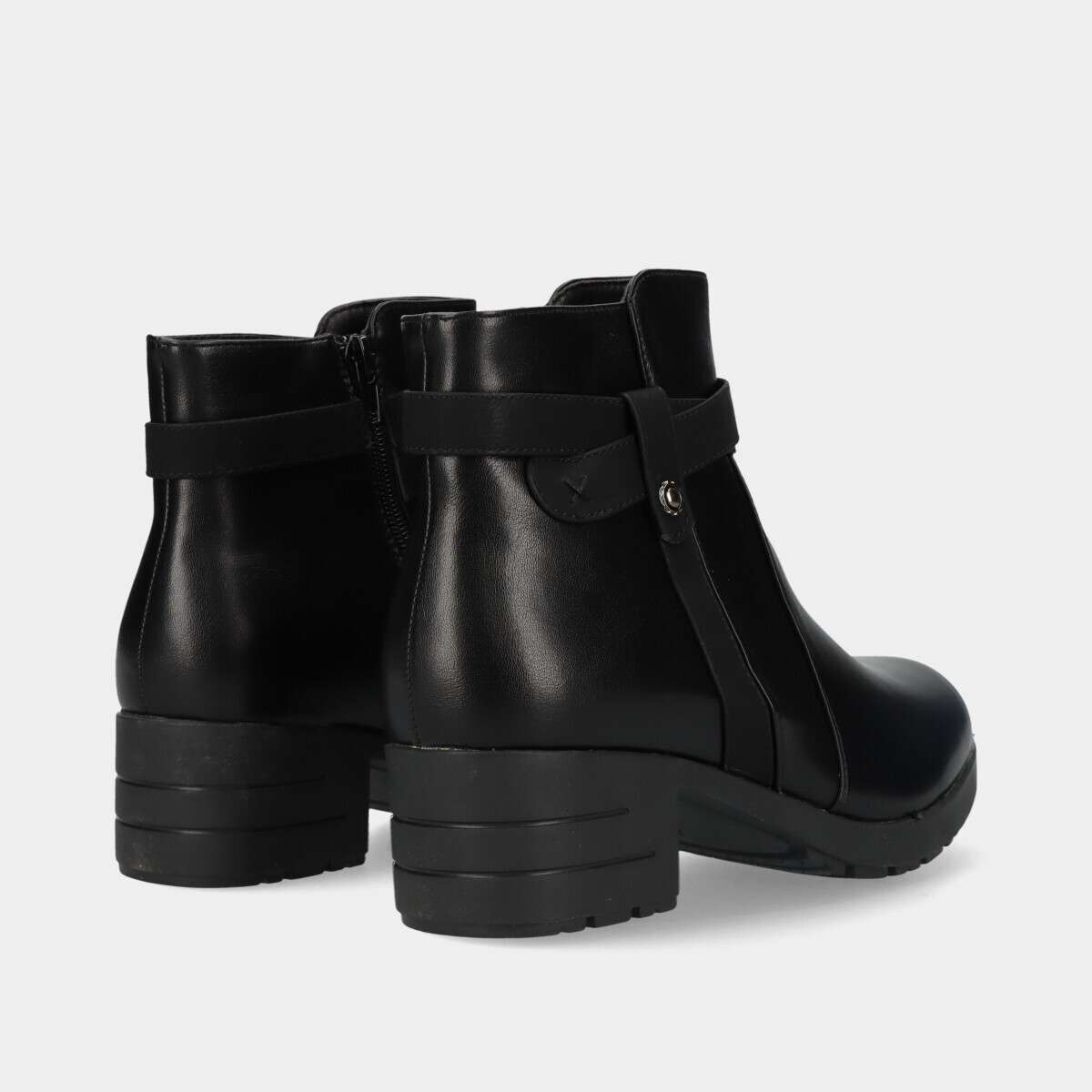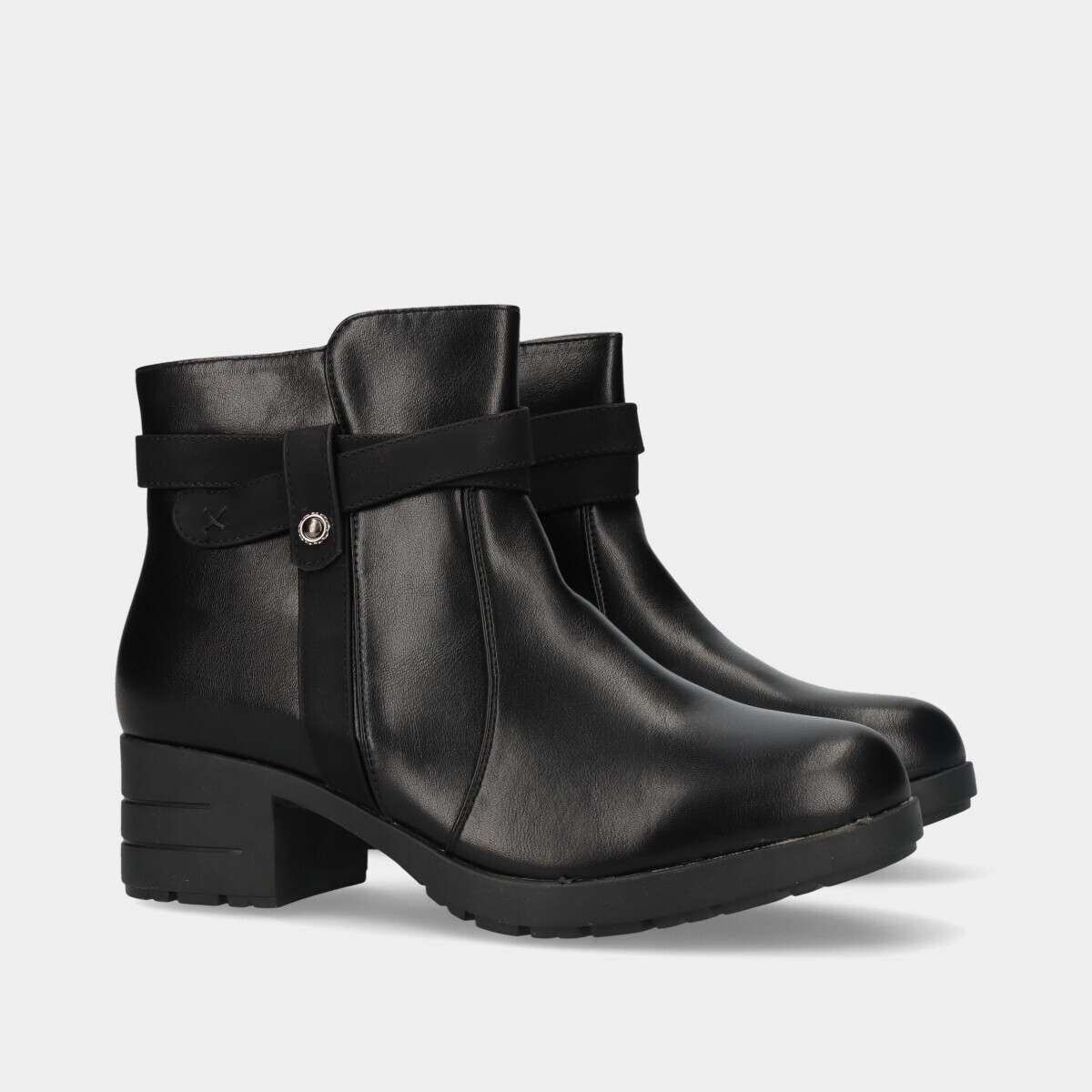 Bota na cor preta, com aplicação decorativa, forro quente de pelo e fecho lateral.