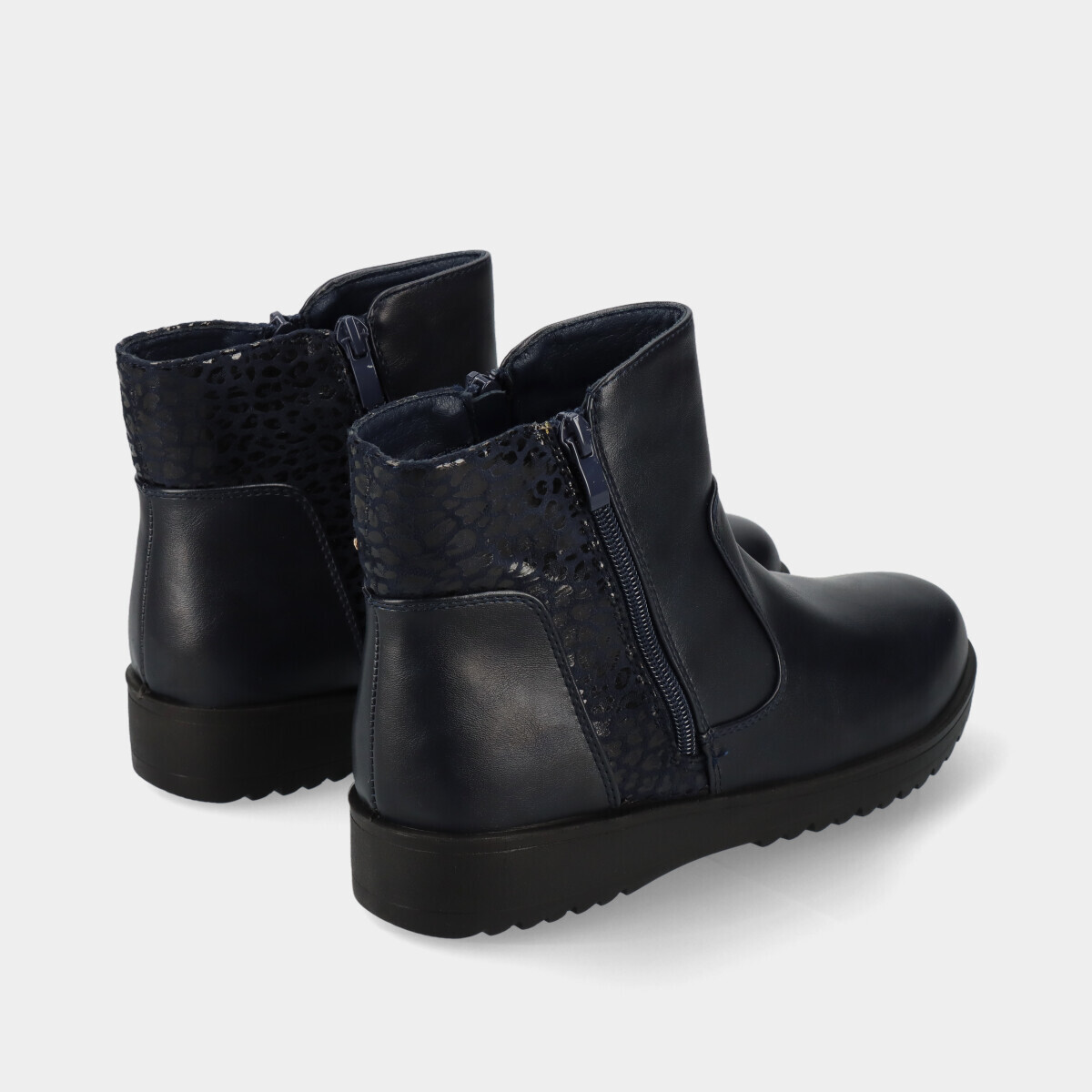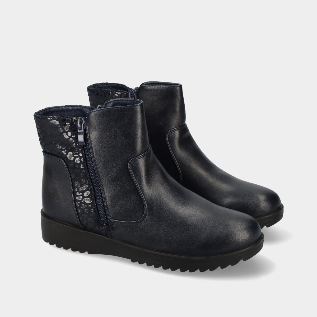 Botins de conforto para mulher em azul, com forro macio quente e fecho nas laterais, ideais para uso diário.