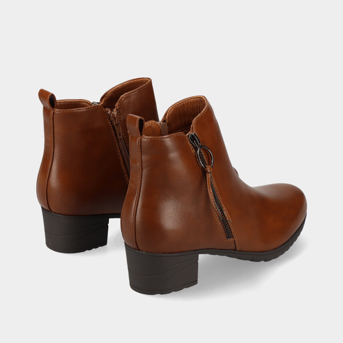 Botins de mulher em castanho com interior em pelo quente e confortável, e fecho na lateral que facilita o calçar.