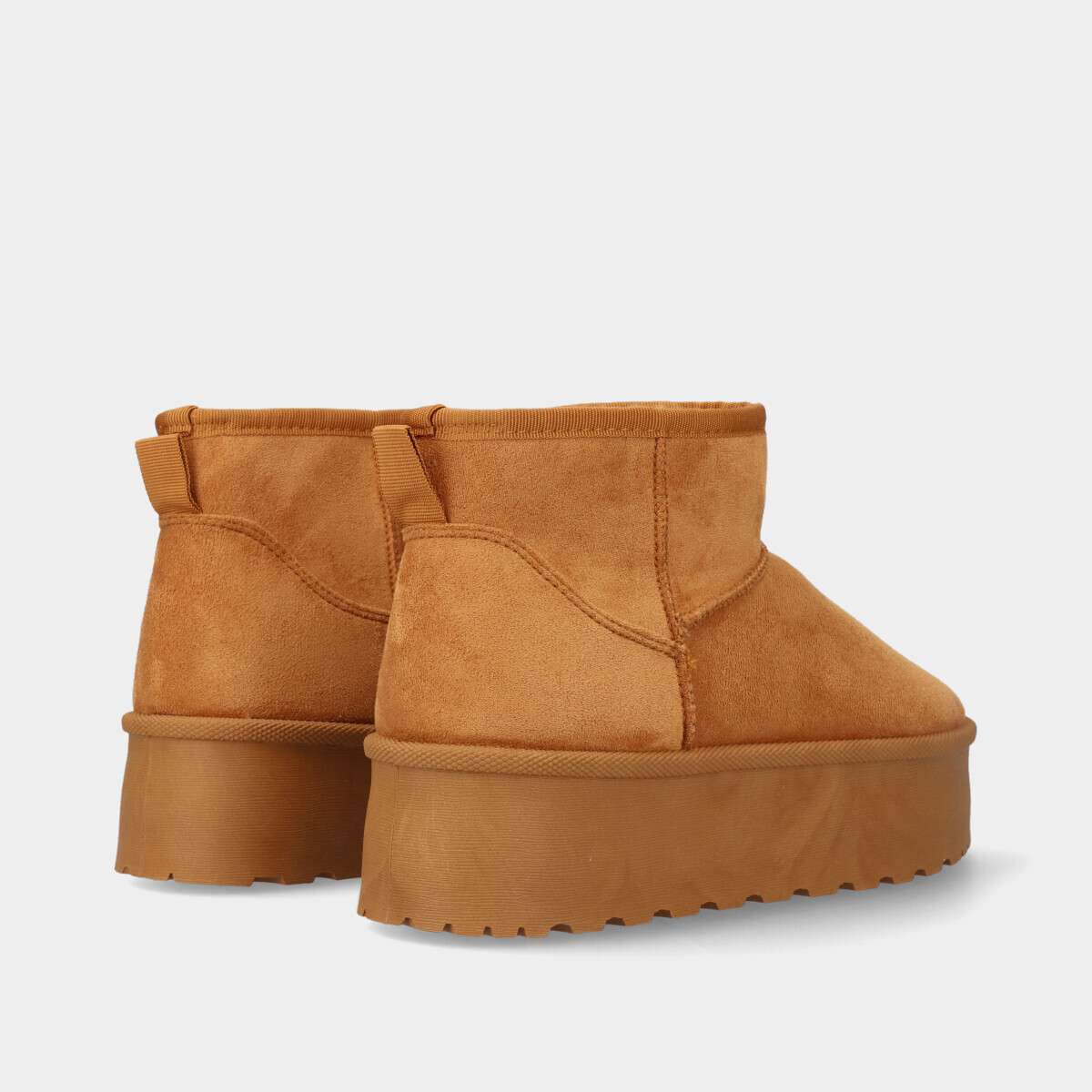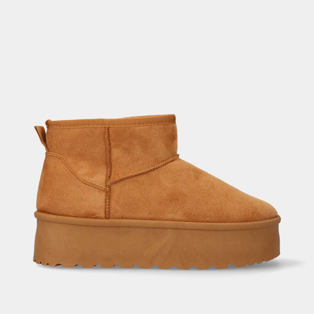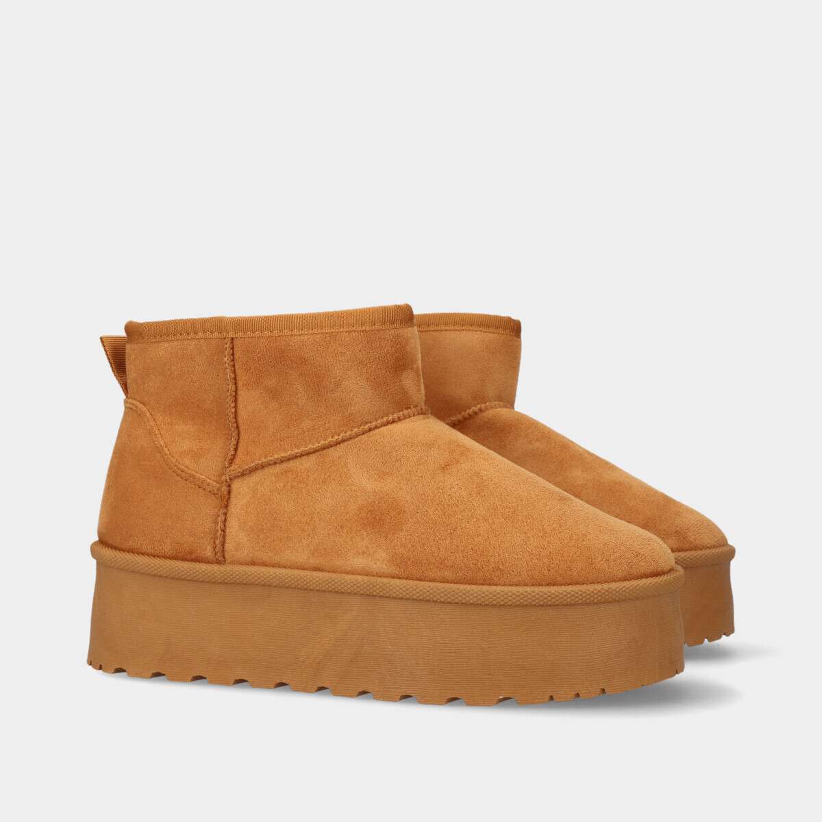 Bota pantufa na cor camel com plataforma e forro de pelo quente.