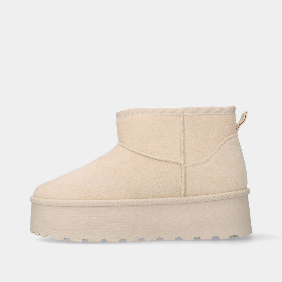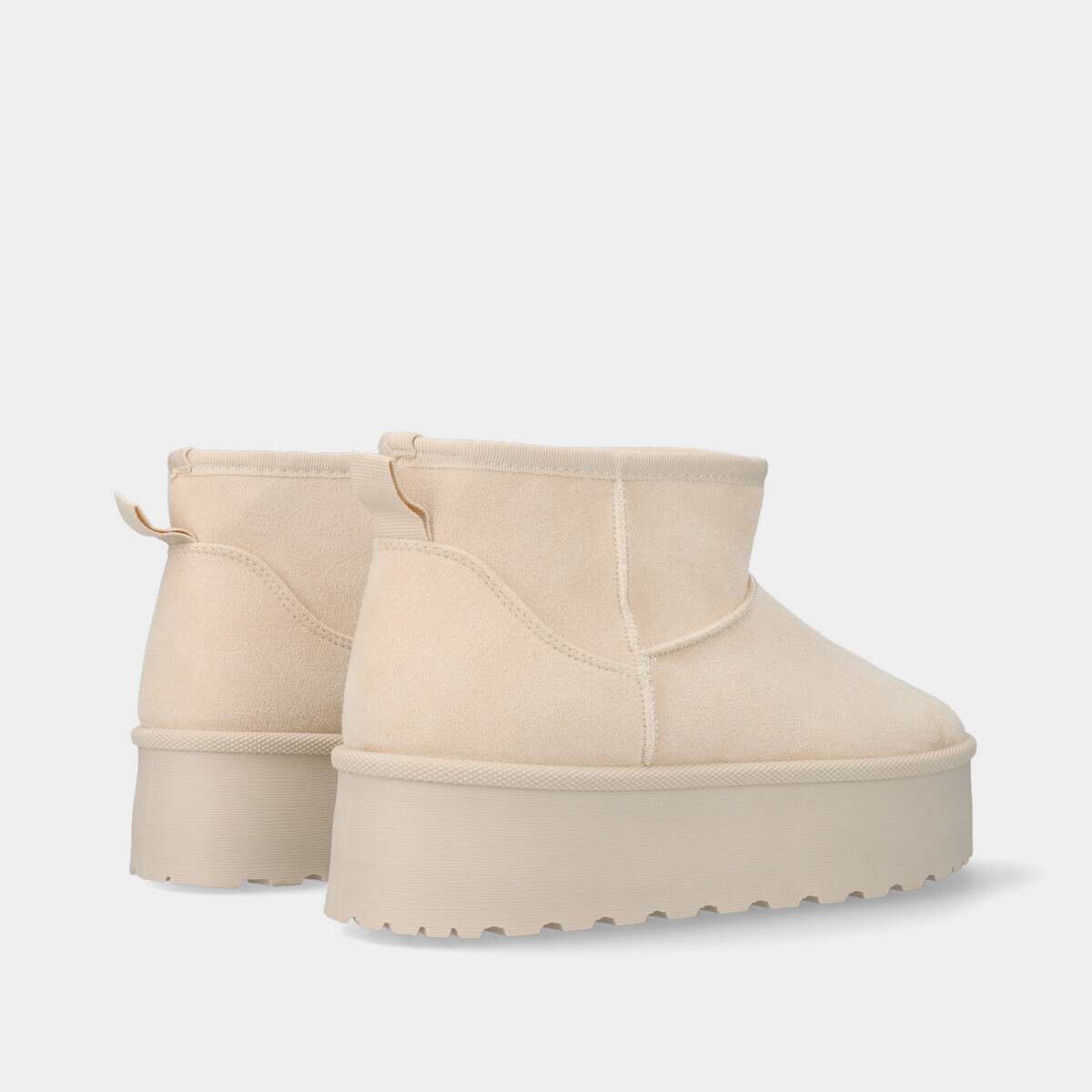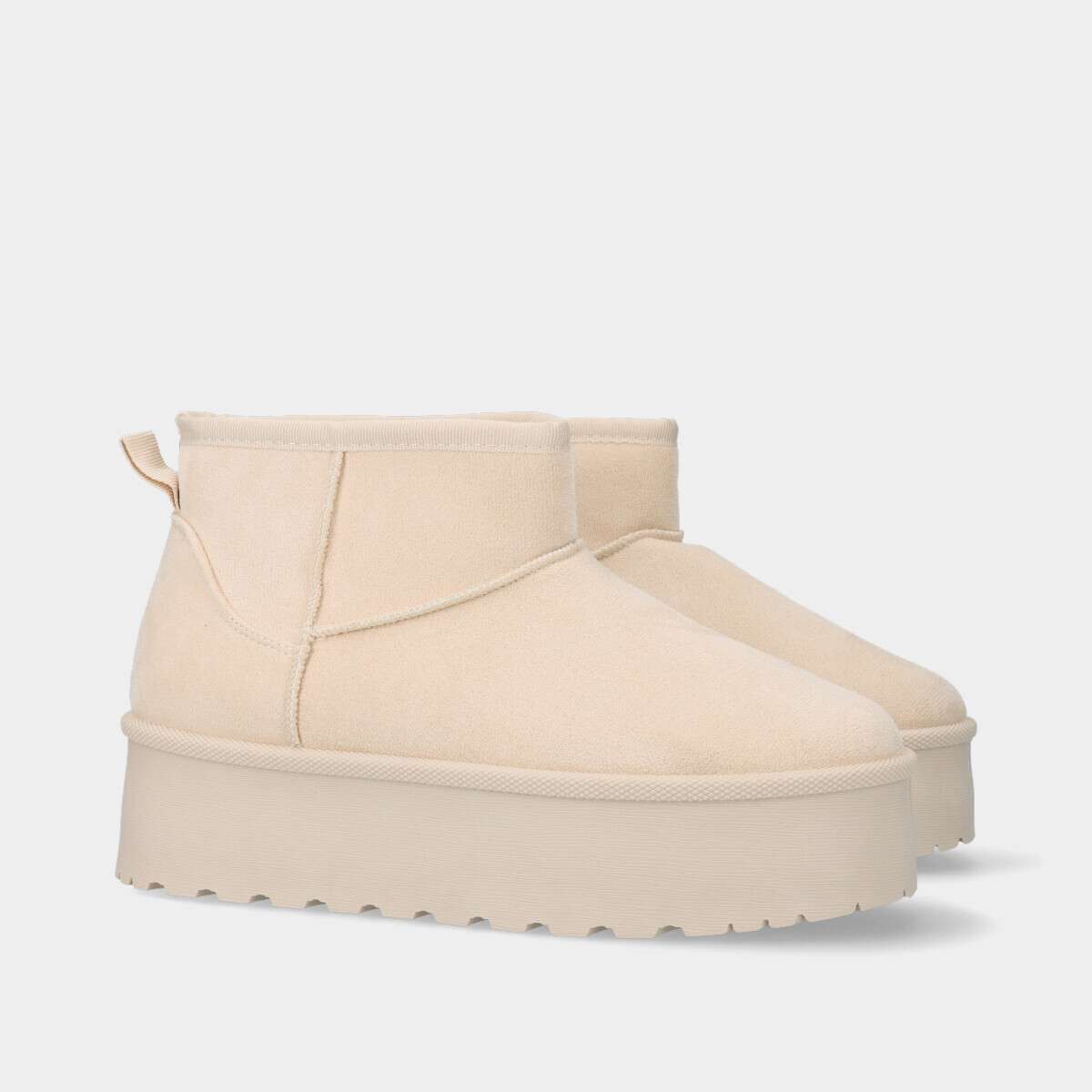 Bota pantufa na cor bege claro com plataforma e forro de pelo quente.