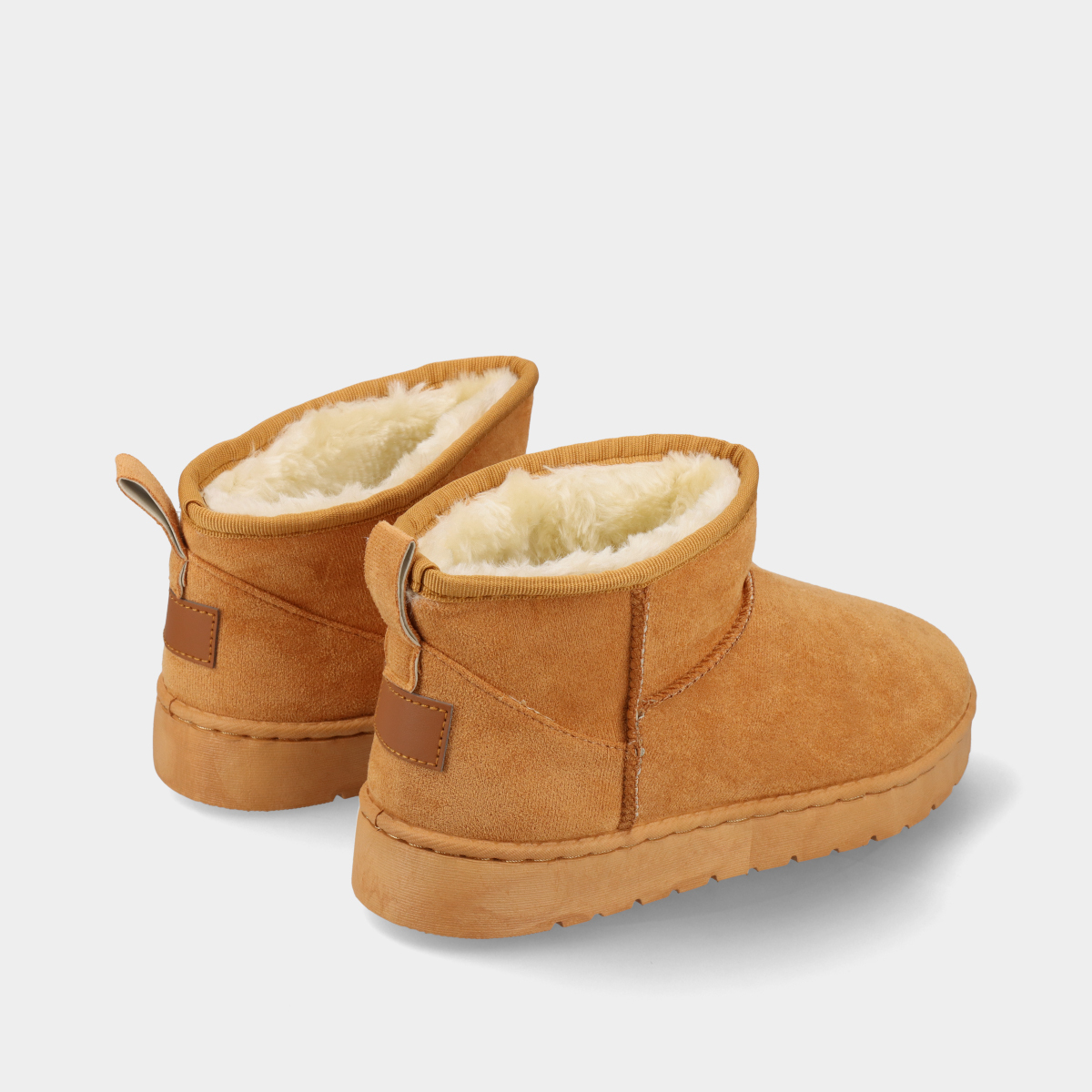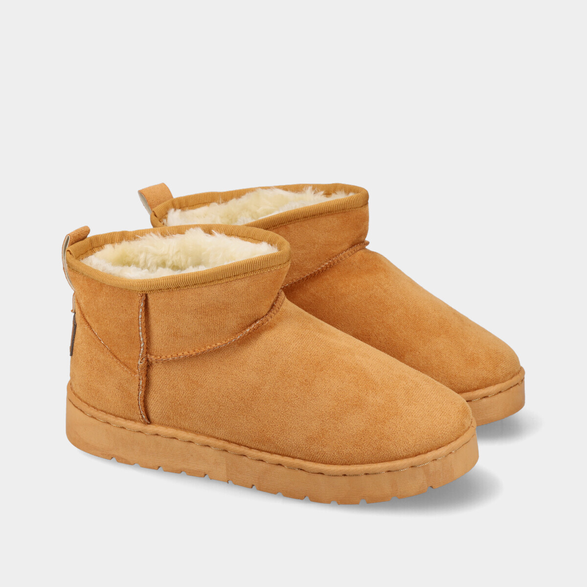 Botim em camel para mulher, com interior em pelo quente e sola flexível, perfeito para um look de inverno confortável.