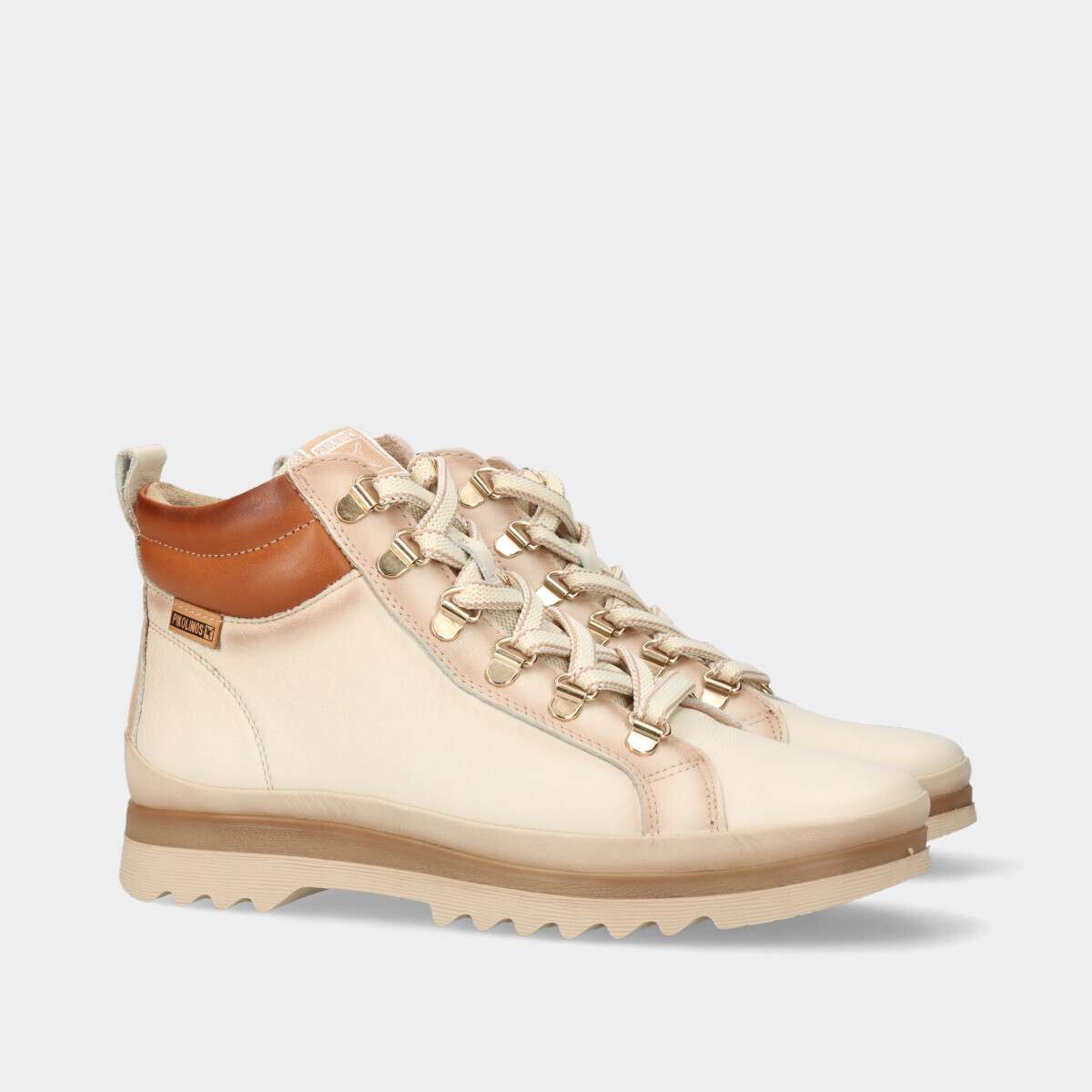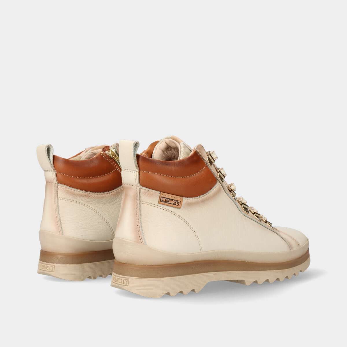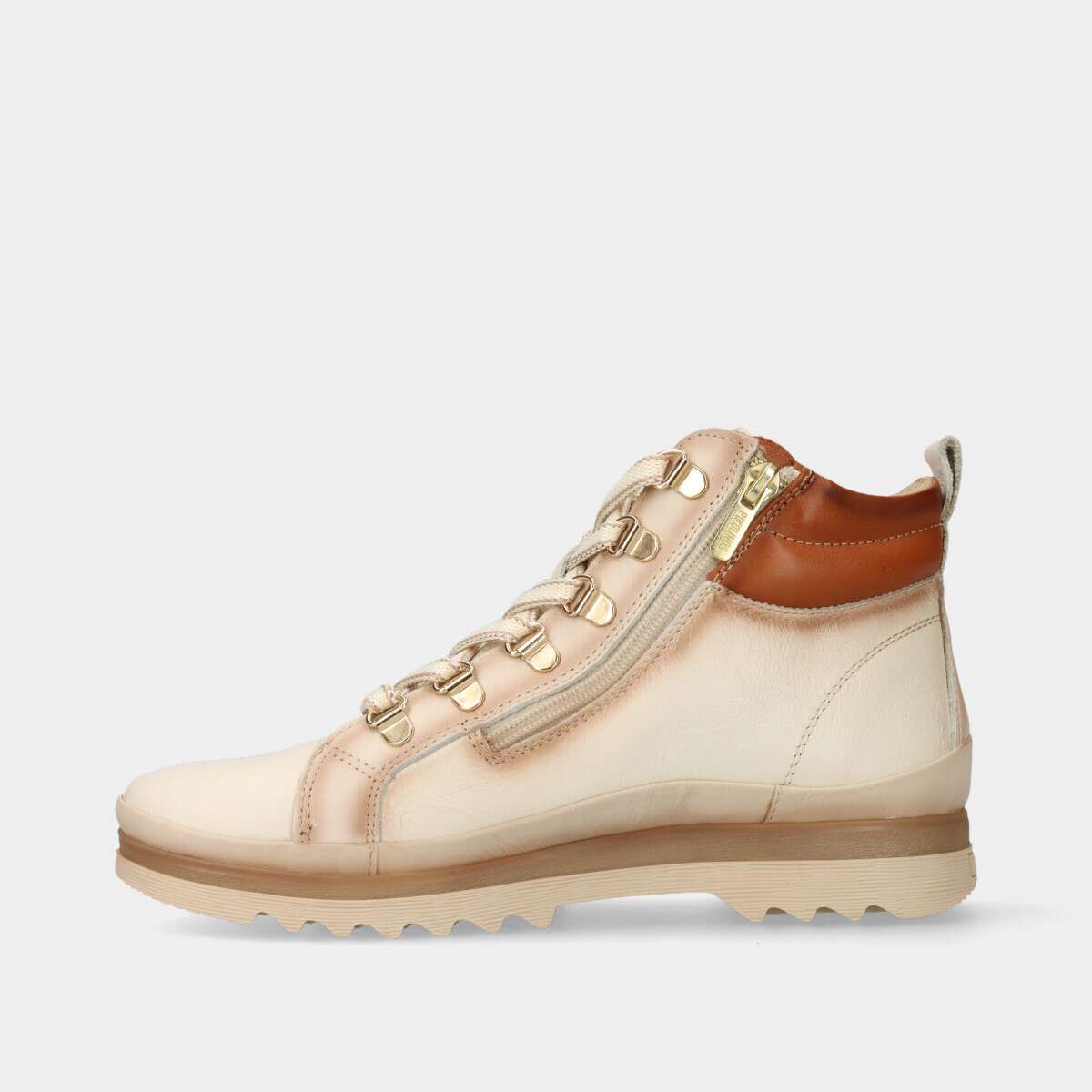 Botim feminino na cor bege claro com cordão e fecho lateral, Extra Confort e palmilha interior Memory Foam. Máximo conforto no arco e no tornozelo, graças à sua tecnologia arch support, que conta um suporte extra-acolchoado.