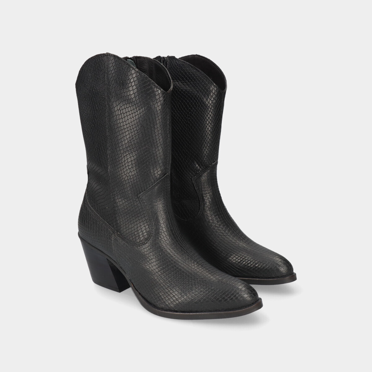 Desvende o seu espírito aventureiro com as nossas botas texanas em pele, na elegante cor preta.