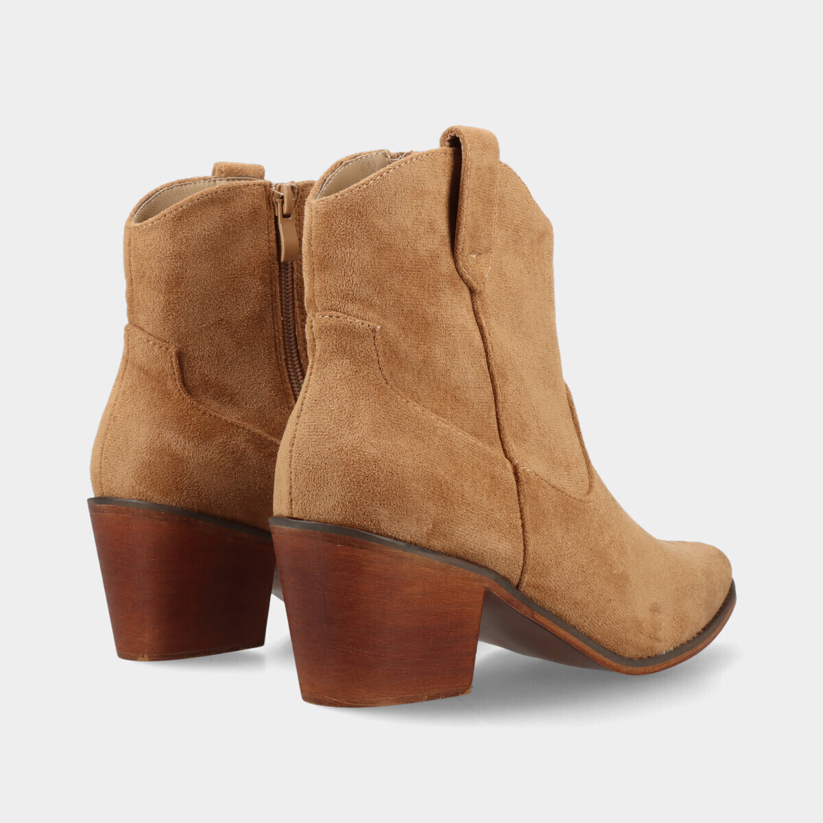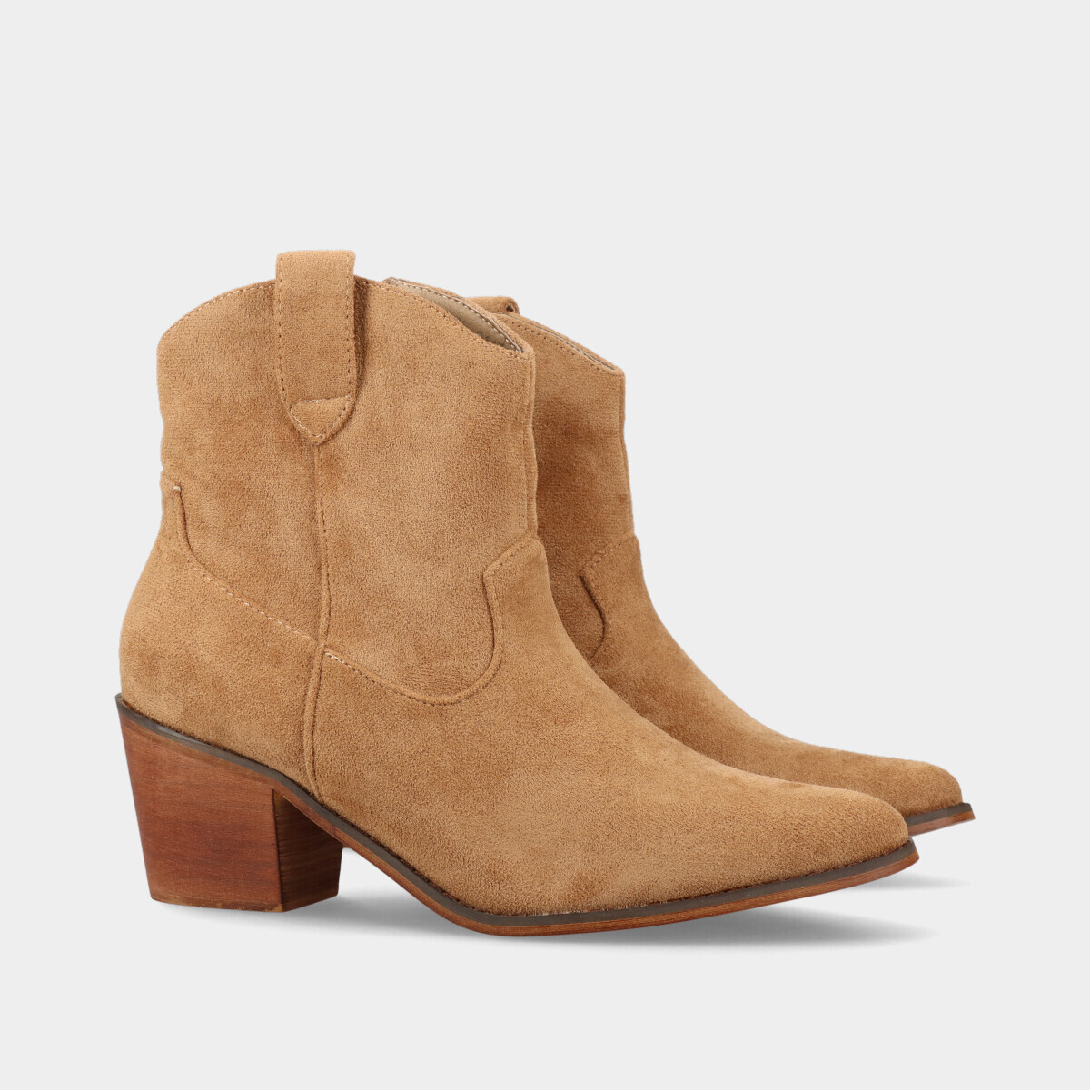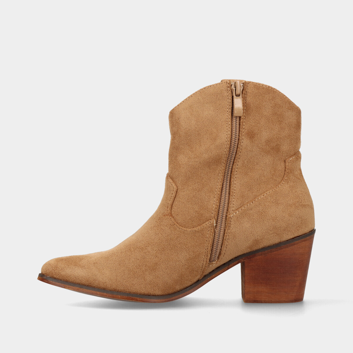 Botas texanas na cor camel com efeito camurça. Fecho interior que facilita o calçar e tacão em bloco para maior conforto.
