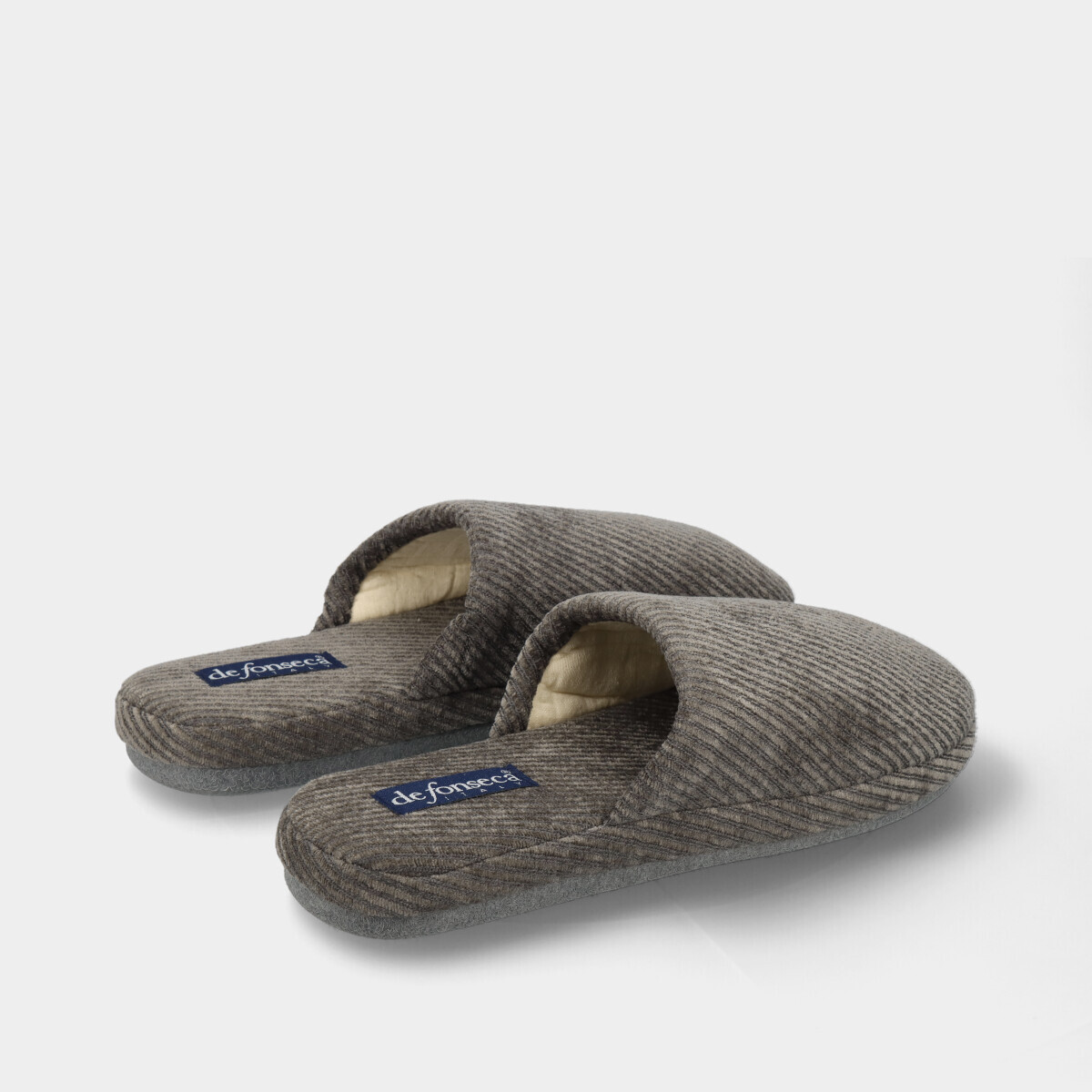 Chinelos de quarto para homem na cor cinza, laváveis na máquina a 30º sem centrifugação. Confortáveis, com interior em pelo macio, sola de borracha flexível e palmilha que se adapta ao pé, garantindo maior bem-estar no uso diário em casa.