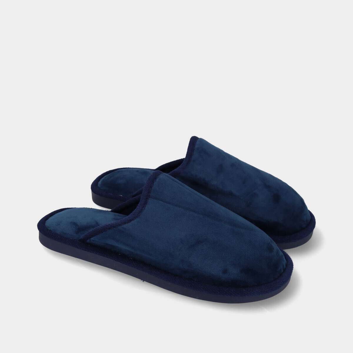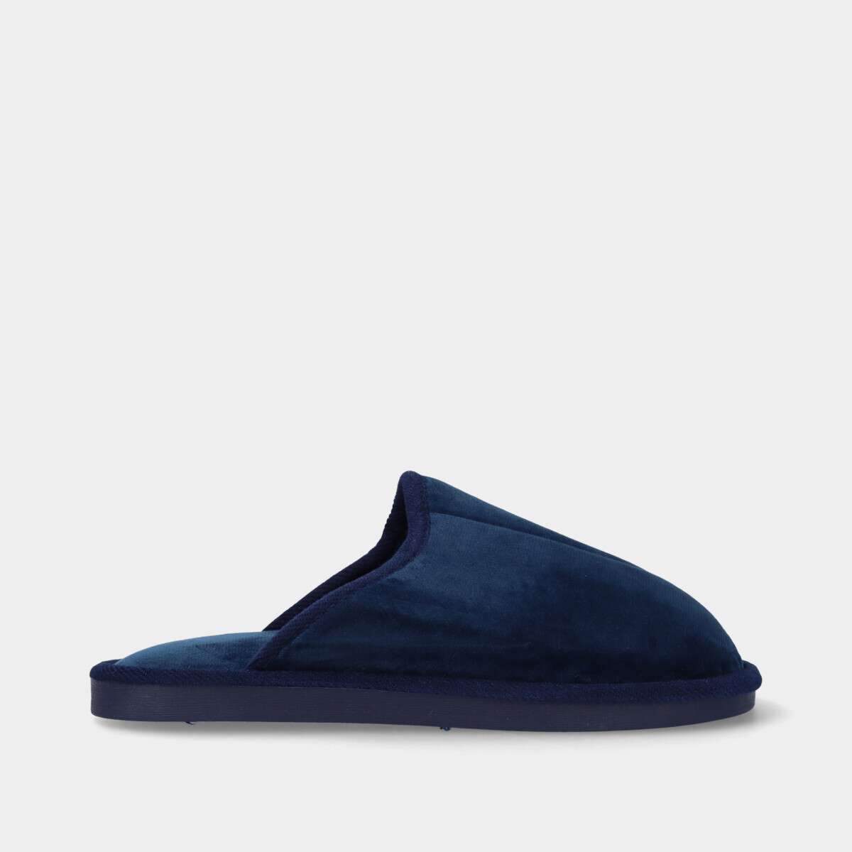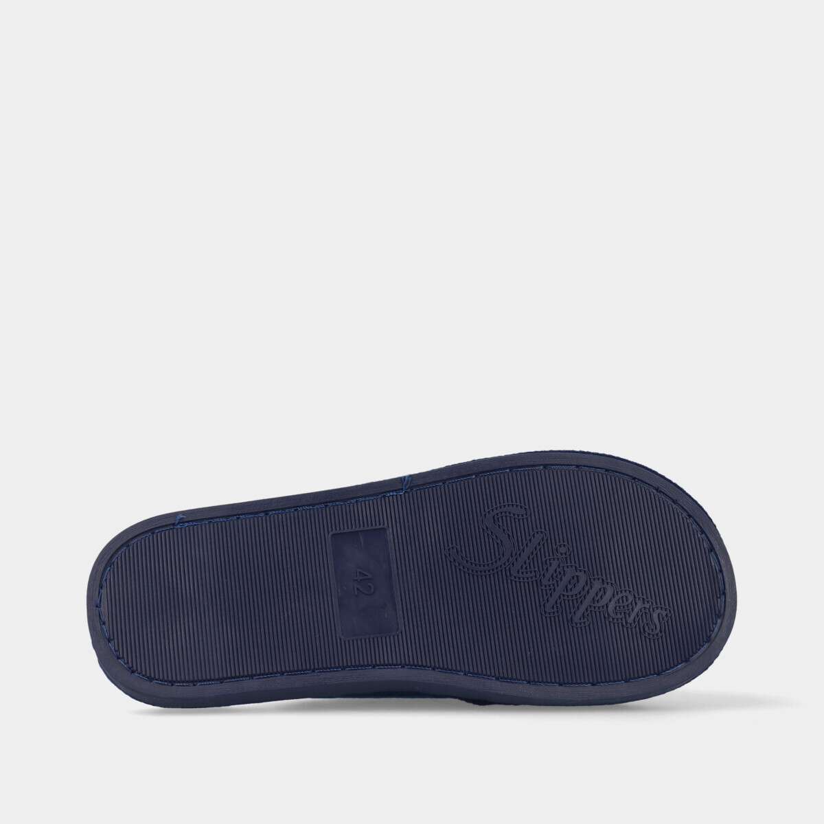 Chinelo na cor azul com sola de borracha.