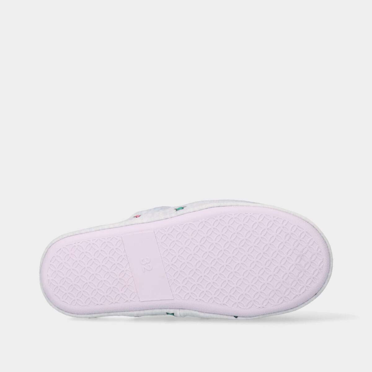 Chinelo na cor cinza com tema de gato e colorido, forro quente de pelo rosa e sola antiderrapante.