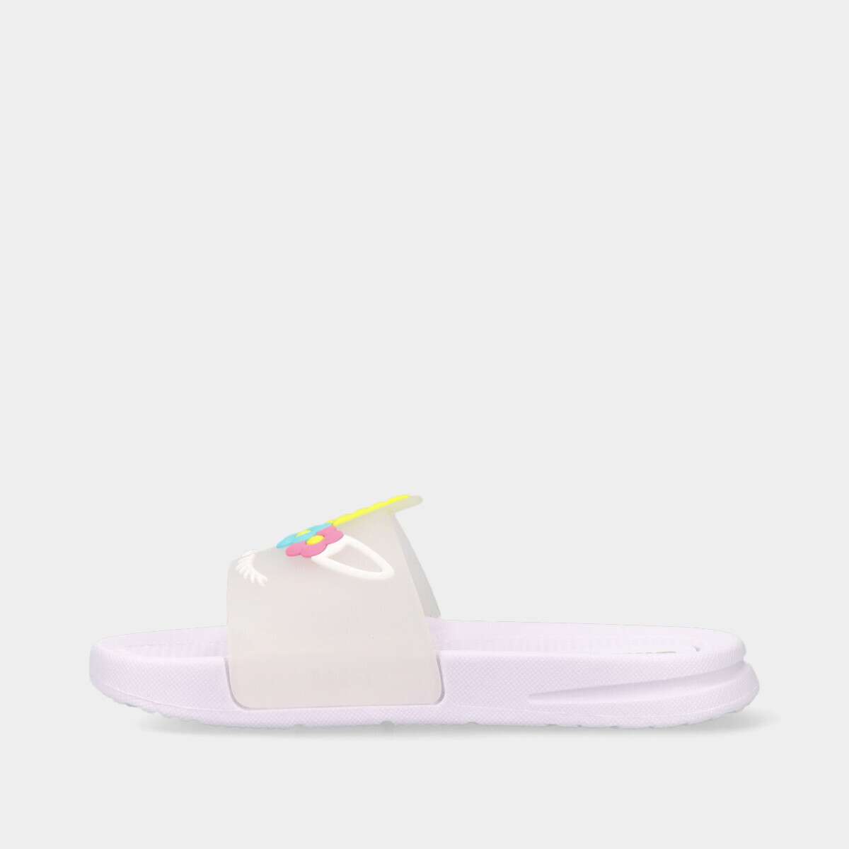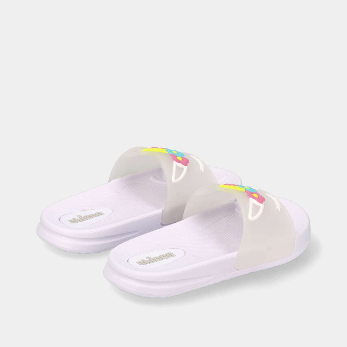 Chinelo infantil branco com unicórnio para menina, leve e confortável.