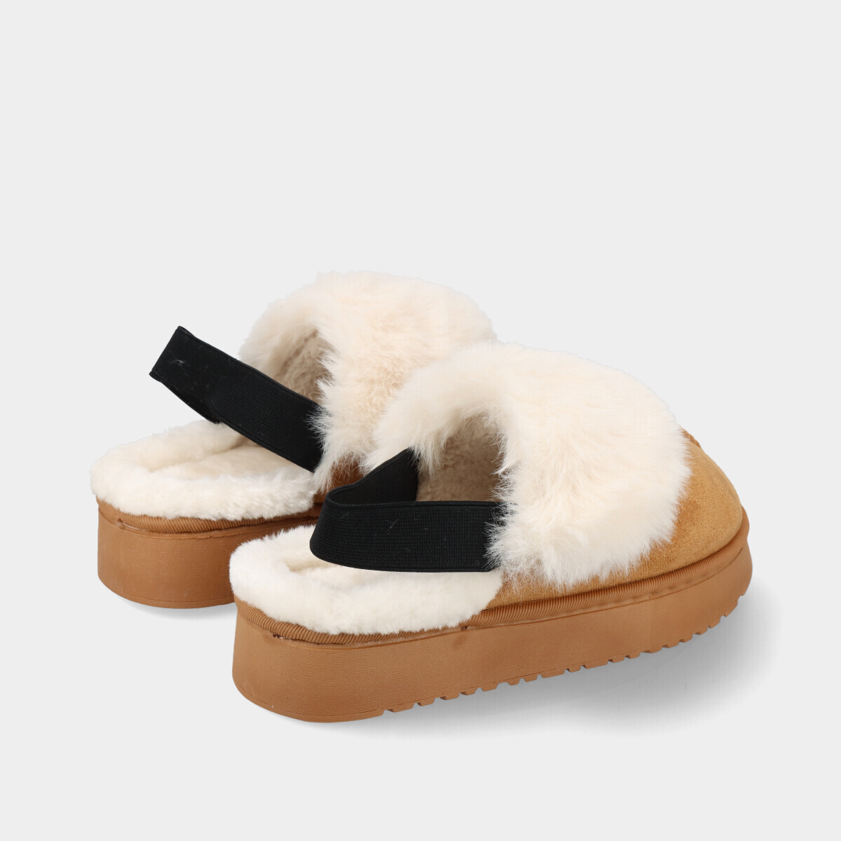 Socas de plataforma para menina em camel, com forro e gola em pelo quente, ideais para conforto e estilo no outono e inverno.