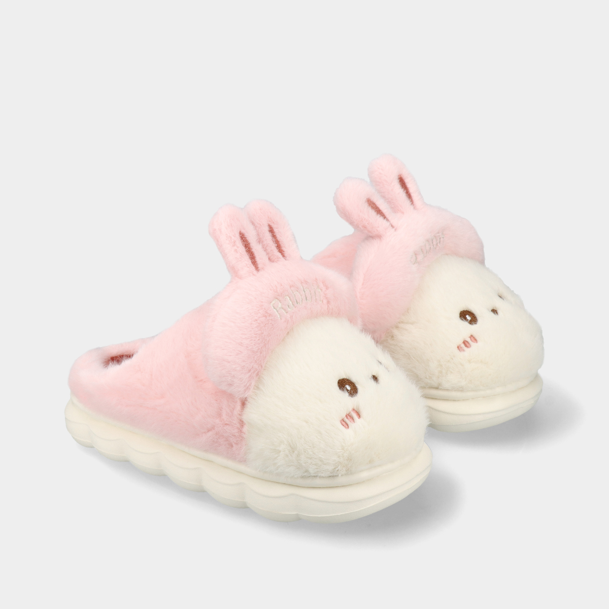 Chinelos slippers memory de peluche rosa em forma de coelho para menina, muito leves, confortáveis e flexíveis, com forro de pelo, ideais para os dias frios e para manter os pés quentes.