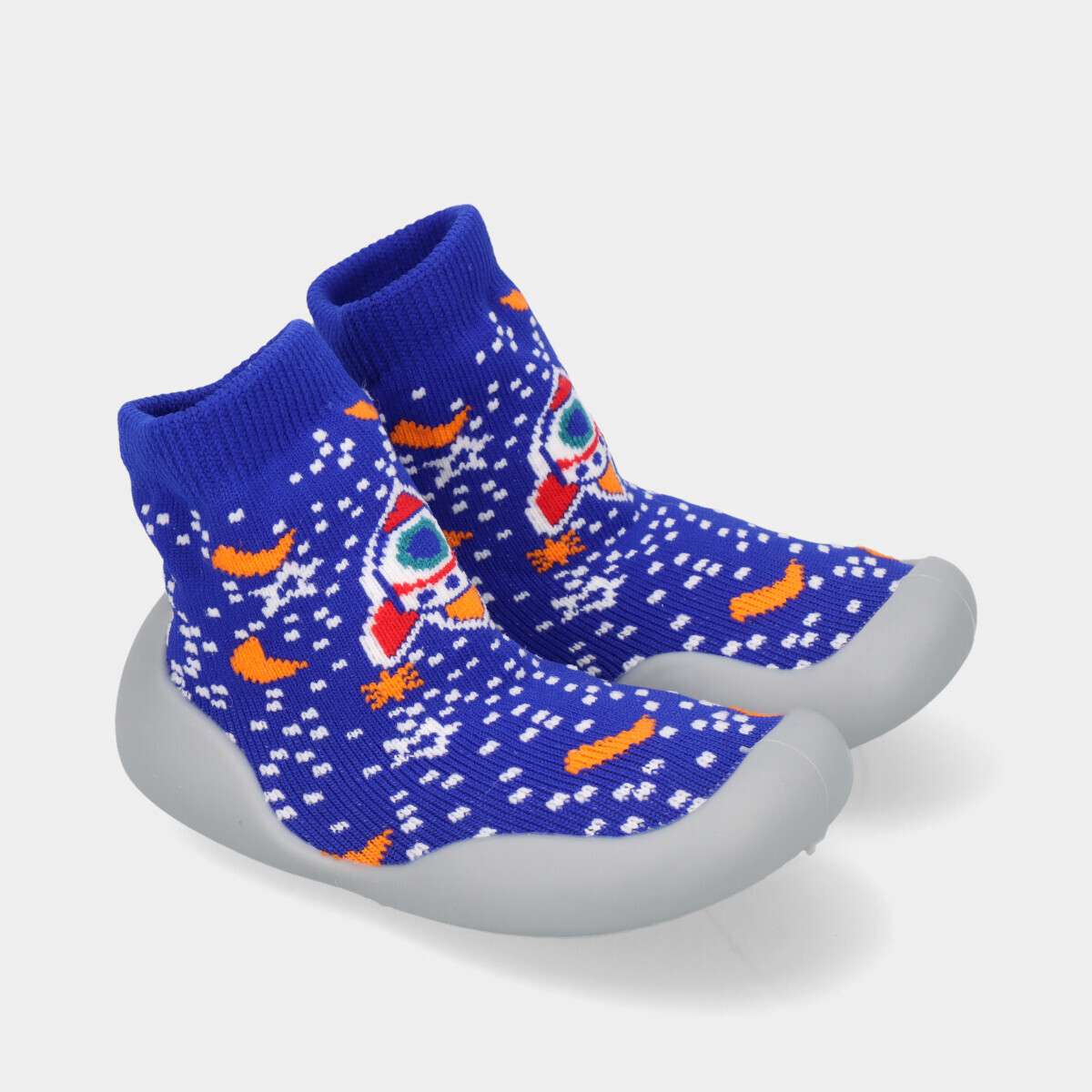 Chinelos slippers memory em azul para menino, muito leves, confortáveis e flexíveis, com forro de pelo, ideais para os dias frios e para manter os pés quentes.