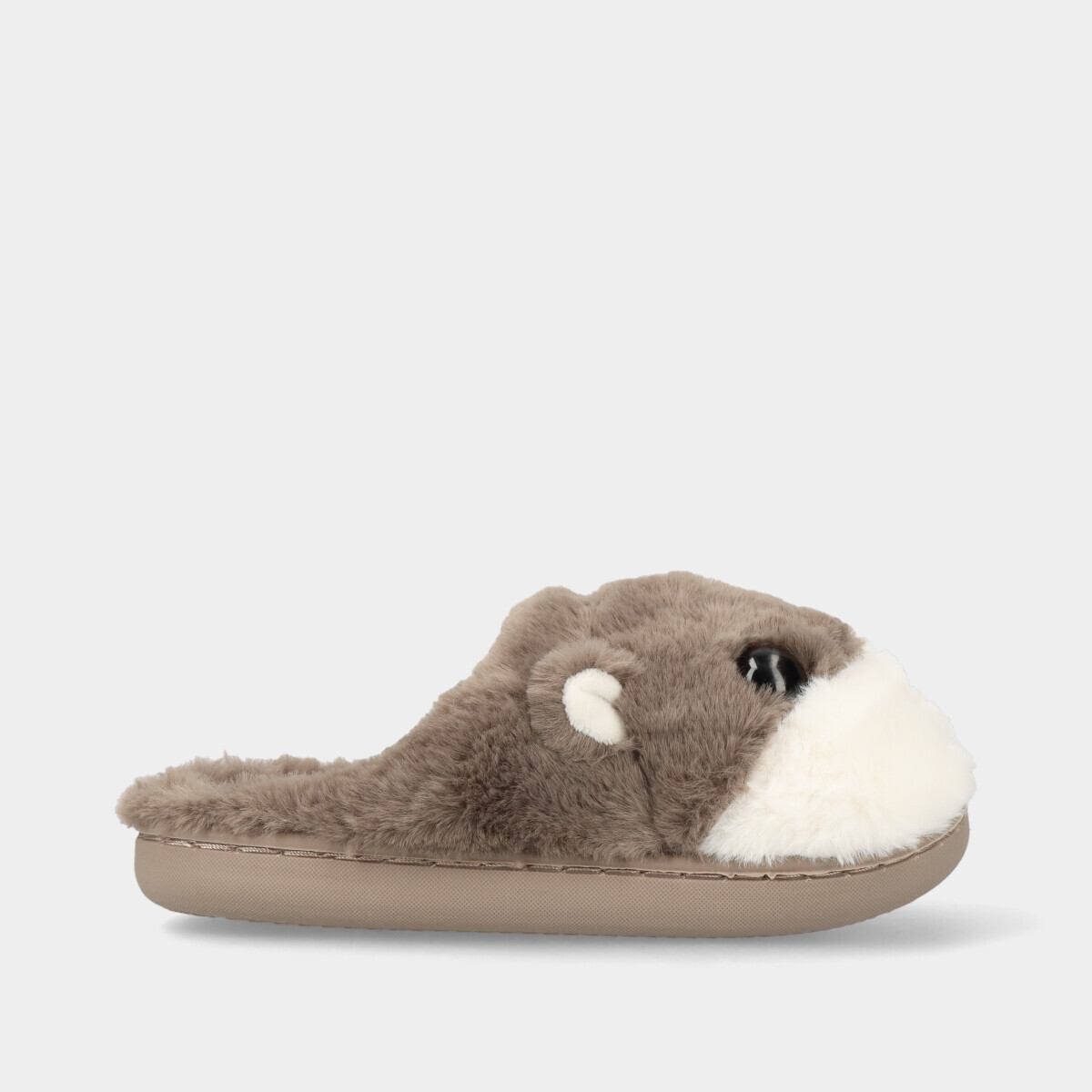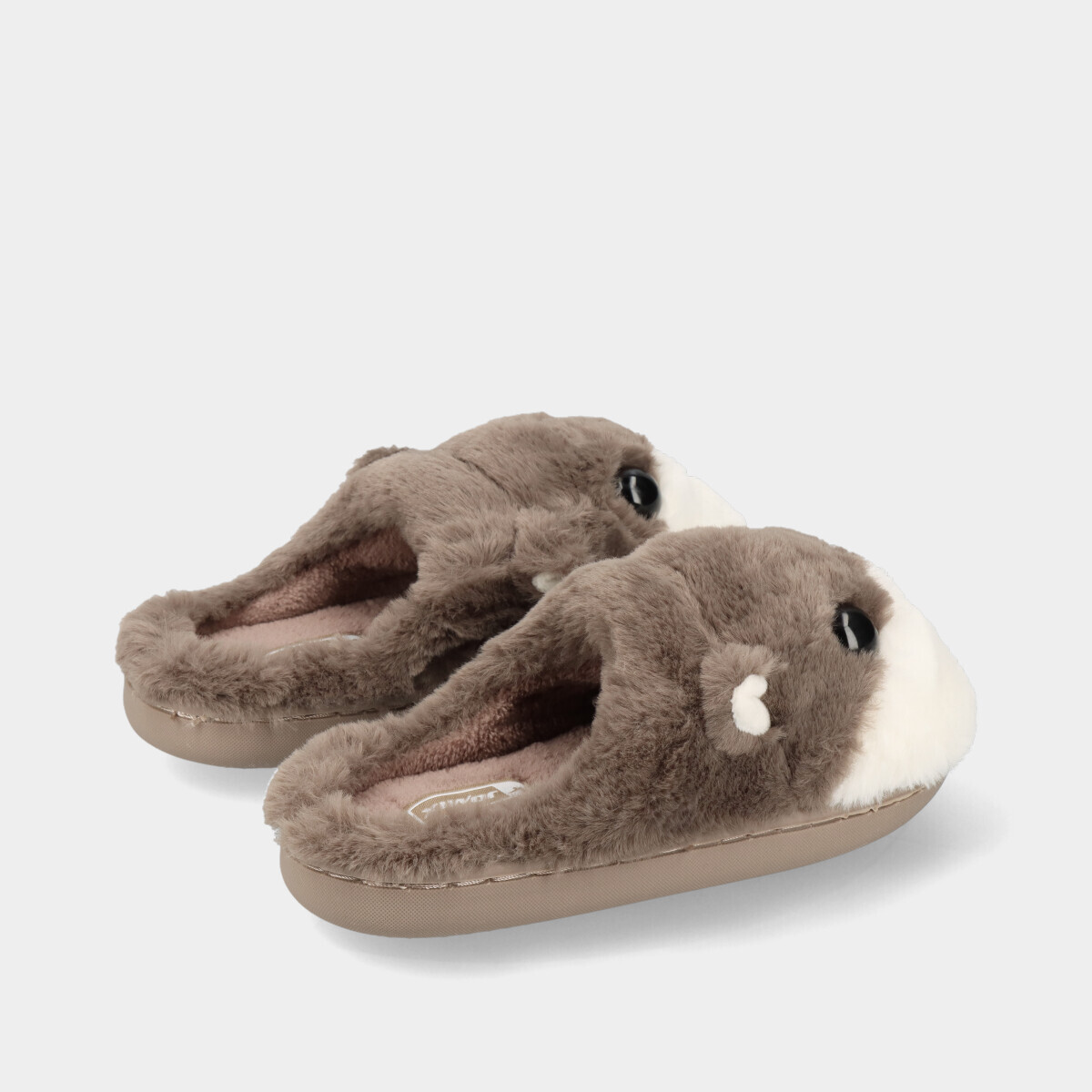 Chinelos slippers memory em taupe para menino, muito leves, confortáveis e flexíveis, com forro de pelo, ideais para os dias frios e para manter os pés quentes.