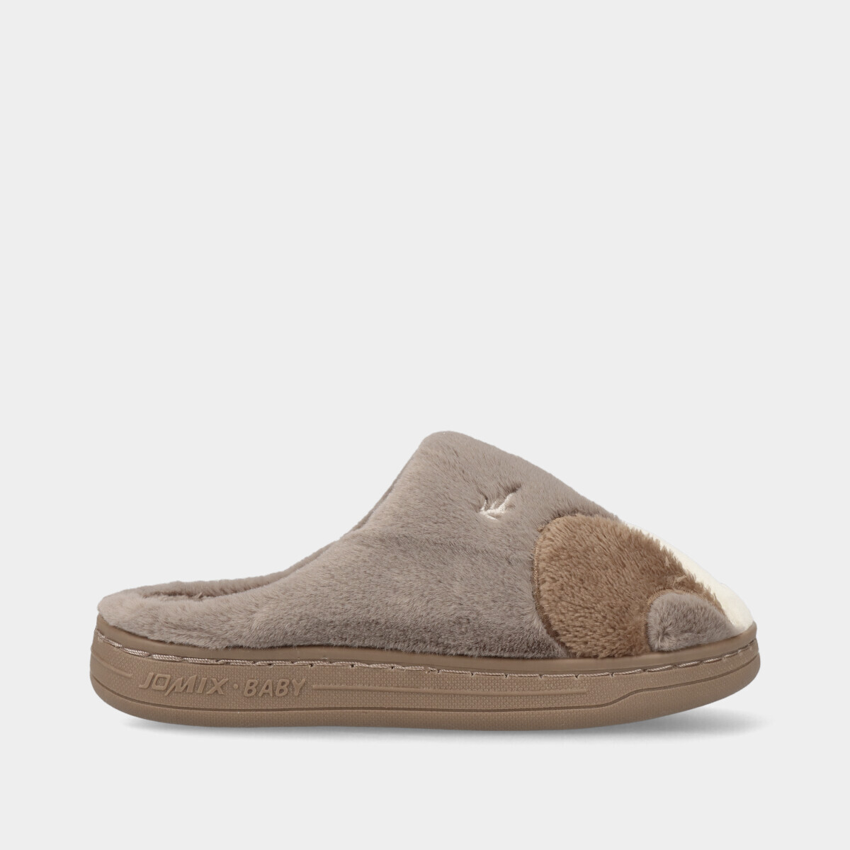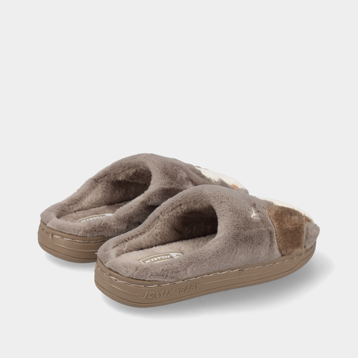 Chinelos slippers memory em taupe para menino, muito leves, confortáveis e flexíveis, com forro de pelo, ideais para os dias frios e para manter os pés quentes.