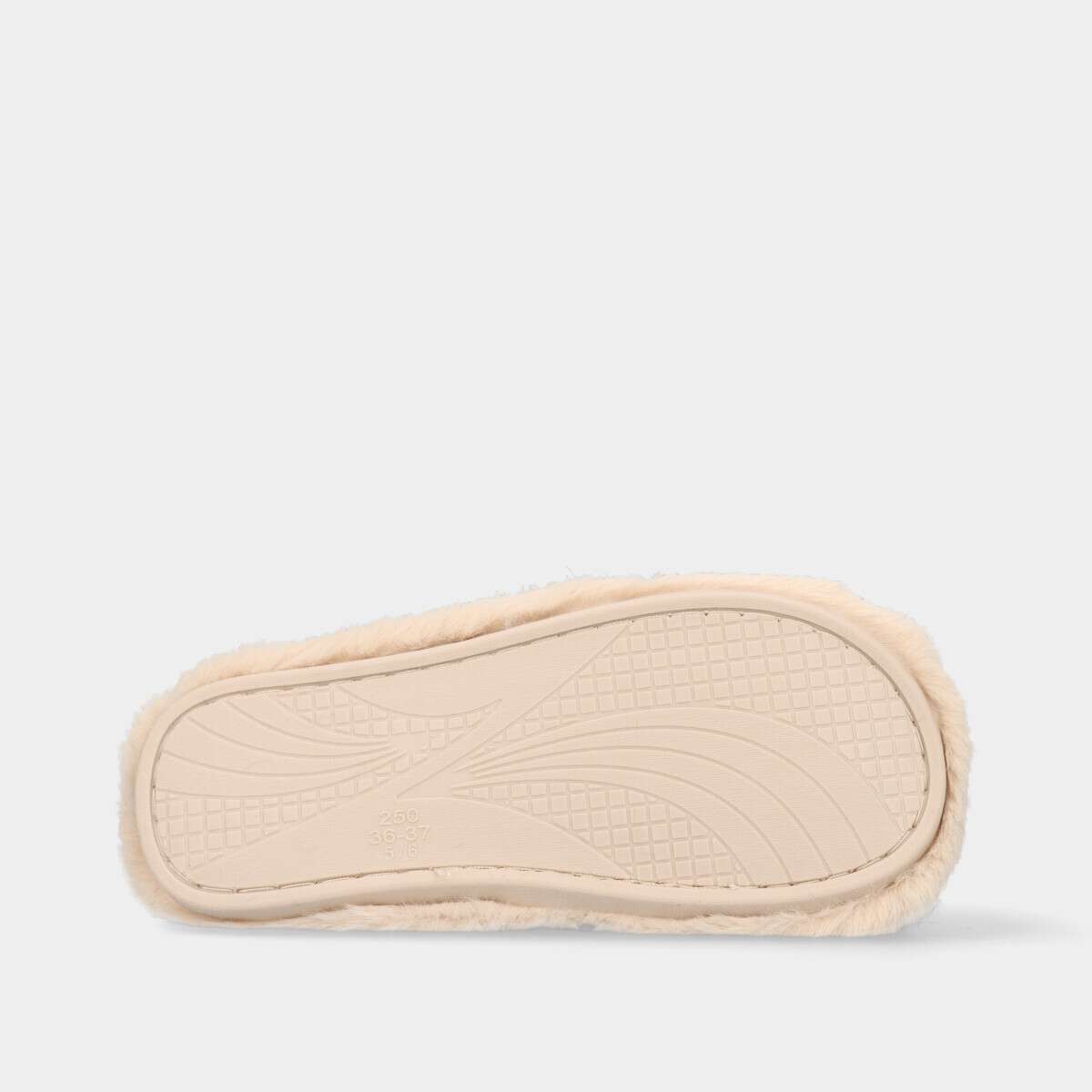 Chinelo todo em pelo na cor bege com sola de borracha.