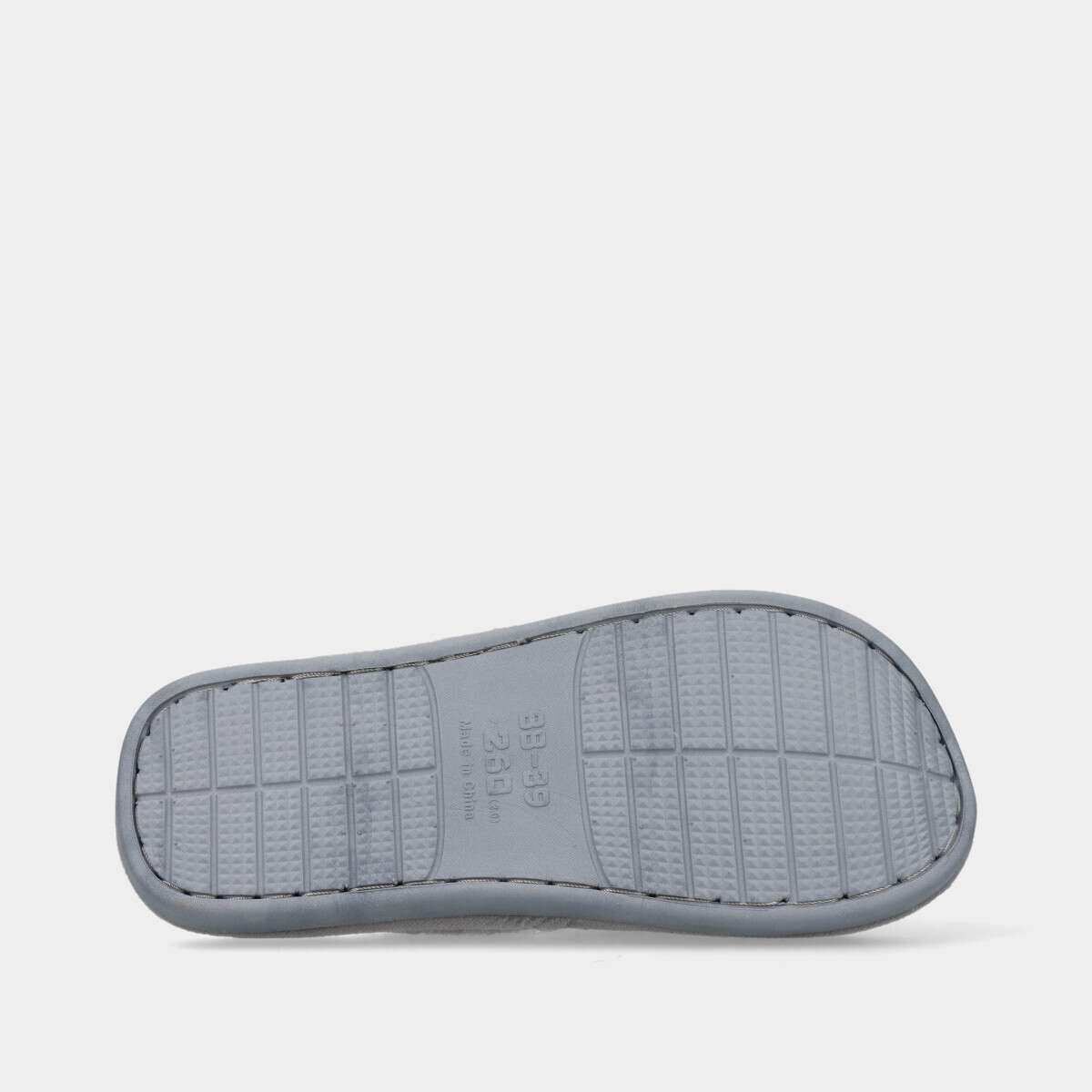 Chinelo de quarto na cor cinza com forro de pelo quente e sola de borracha.