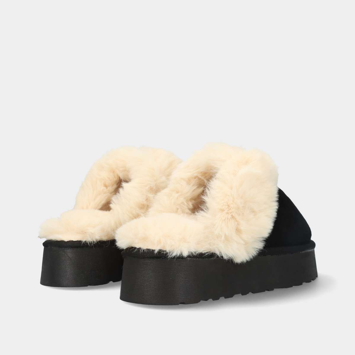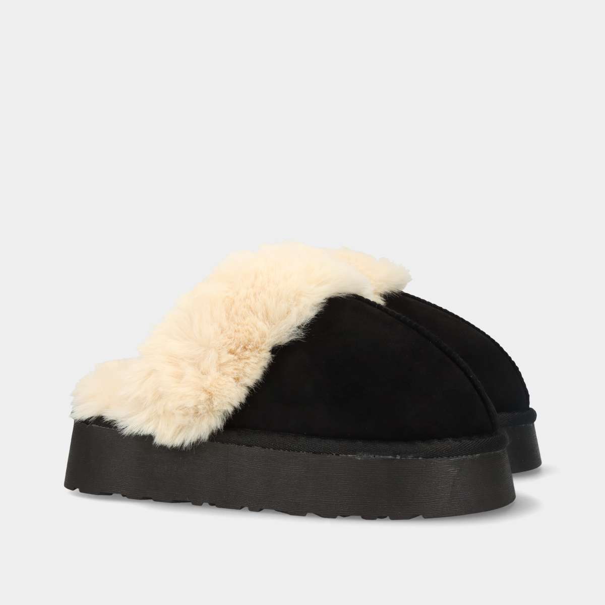 Soca na cor preta com plataforma, gola e forro de pelo quente.