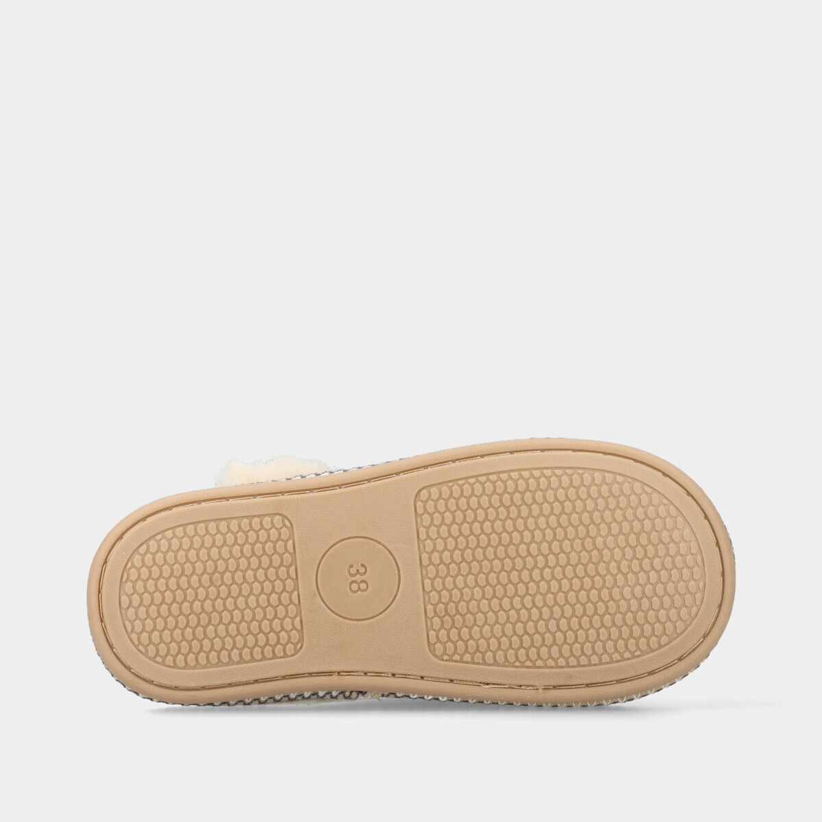 Chinelos de quarto bege para mulher, confortáveis e flexíveis, com forro de pelo, ideais para os dias frios e para manter os pés quentes.