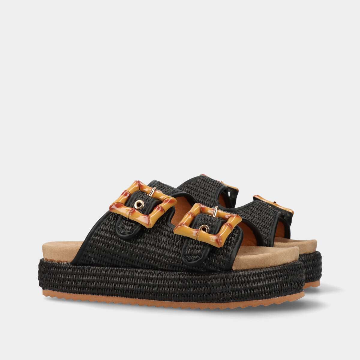 Chinelo confortável na cor preta com efeito palha e fivelas laterais. A cara do calor, de praia e mar, é a escolha ideal para quem deseja combinar conforto e estilo durante a temporada de calor.