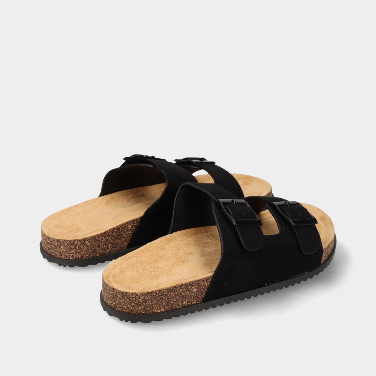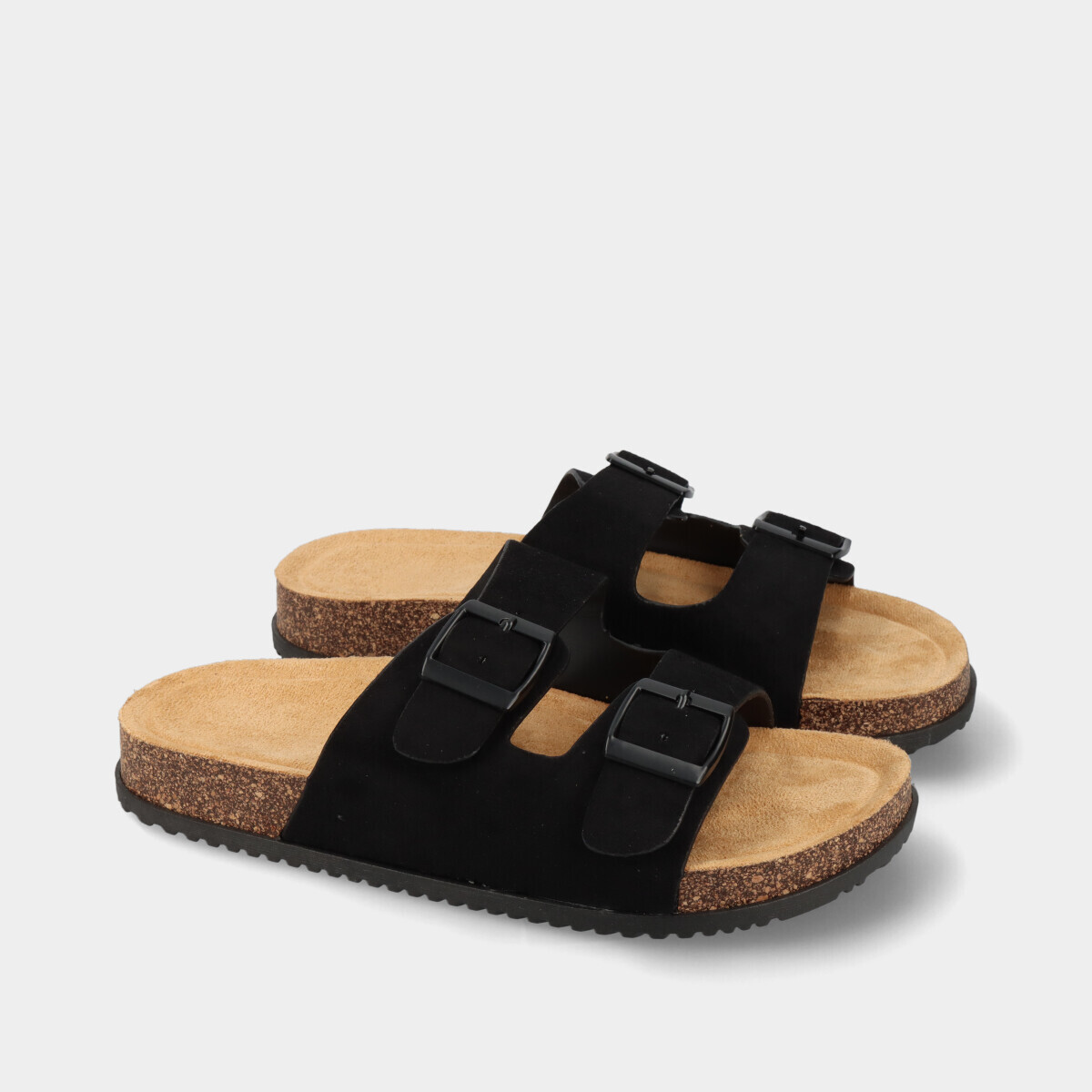 Chinelos anatómicos pretos para mulher com duas tiras e fivelas ajustáveis na lateral e palmilha confortável. Modelo leve e prático, ideal para o dia a dia no verão, combinando conforto e estilo casual.