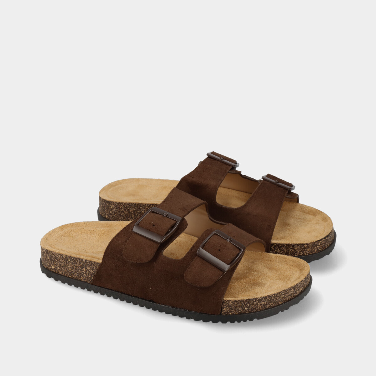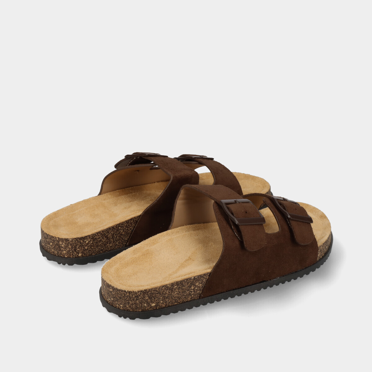 Chinelos anatómicos castanhos para mulher com duas tiras e fivelas ajustáveis na lateral e palmilha confortável. Modelo leve e prático, ideal para o dia a dia no verão, combinando conforto e estilo casual.