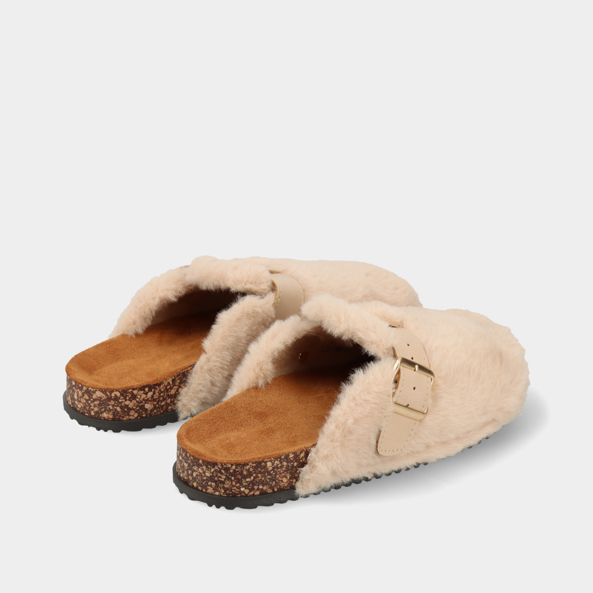 Chinelo mule anatómico para mulher, com pelo e fivela ajustável. Leves e confortáveis, combinam estilo moderno com conforto de um look cozy de outono e inverno.