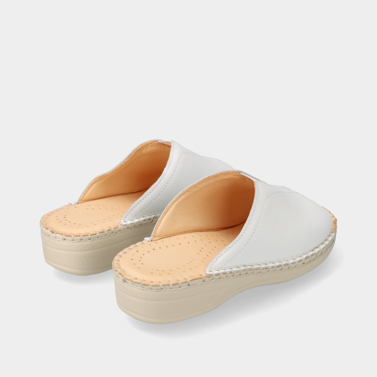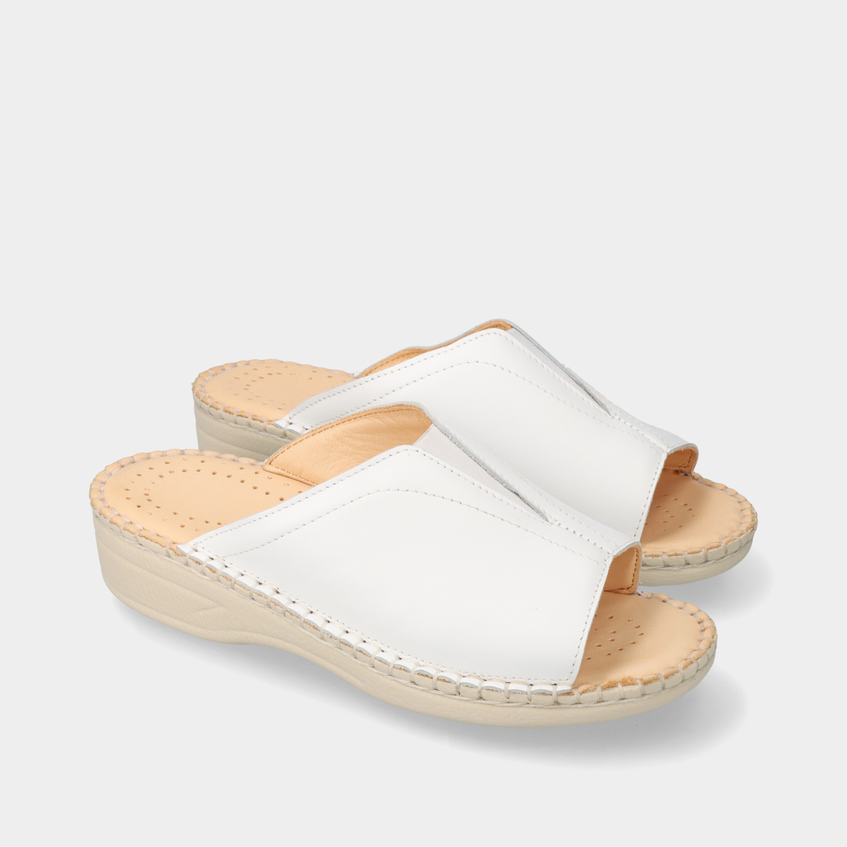 Estes chinelos de conforto em pele, na cor branca, são perfeitos para proporcionar um descanso excecional aos seus pés!
