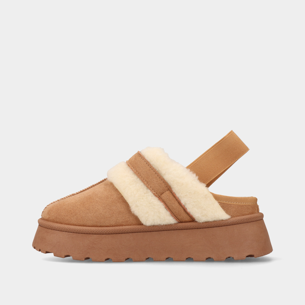 Socas de plataforma para mulher em taupe, com forro e gola em pelo quente, ideais para conforto e estilo no outono e inverno.