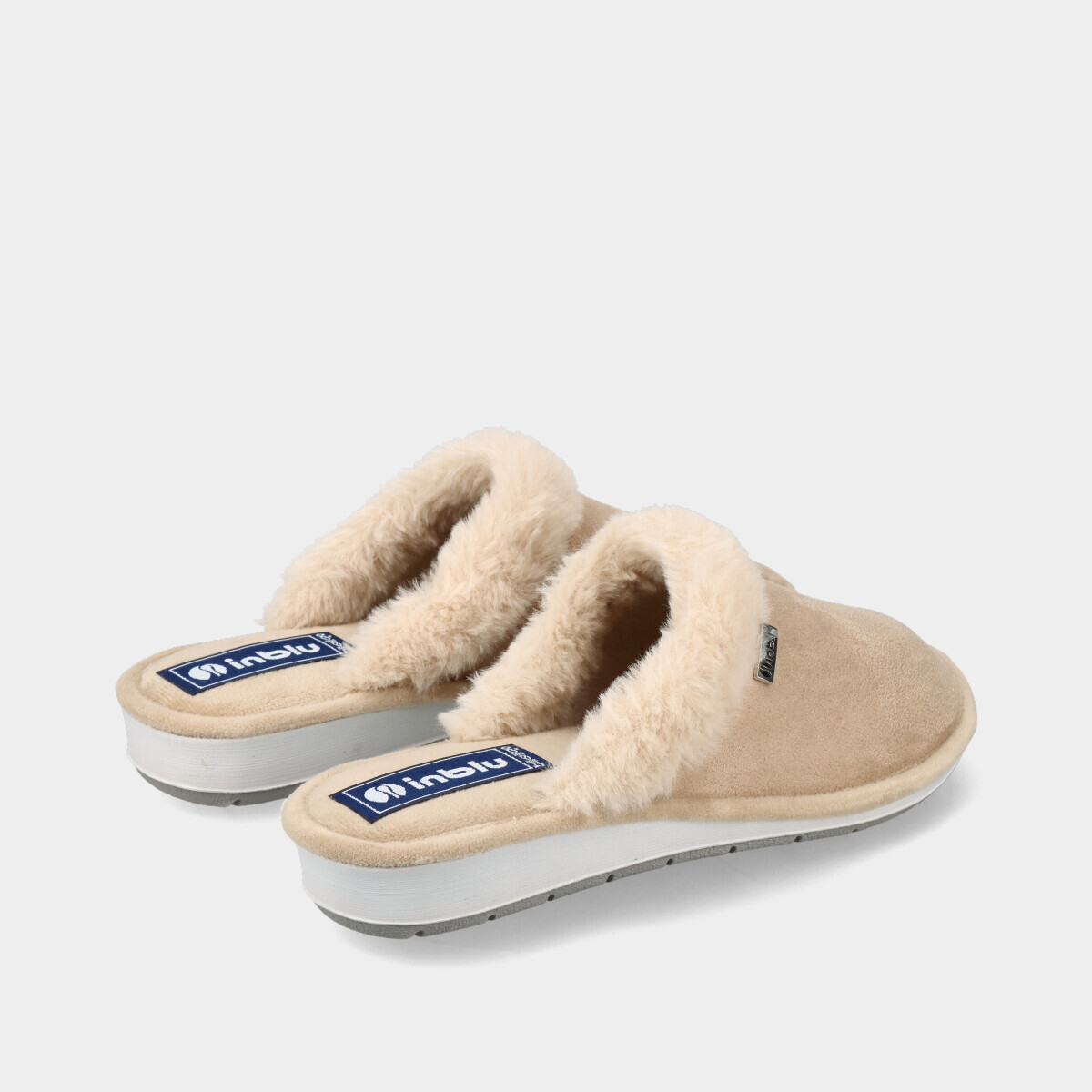 Chinelos de quarto para mulher na cor bege, muito leves e confortáveis, com interior em pelo macio, palmilha acolchoada e sola de borracha flexível, garantindo maior bem-estar no uso diário em casa.