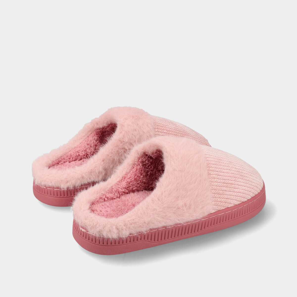 Chinelos de quarto em rosa para mulher, muito leves, confortáveis e flexíveis, com forro de pelo, ideais para os dias frios e para manter os pés quentes.