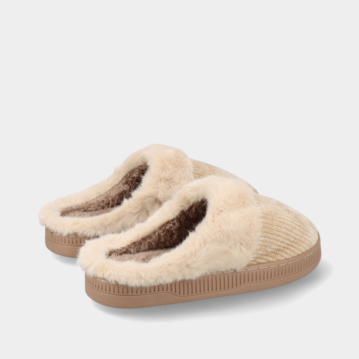 Chinelos de quarto em bege para mulher, muito leves, confortáveis e flexíveis, com forro de pelo, ideais para os dias frios e para manter os pés quentes.