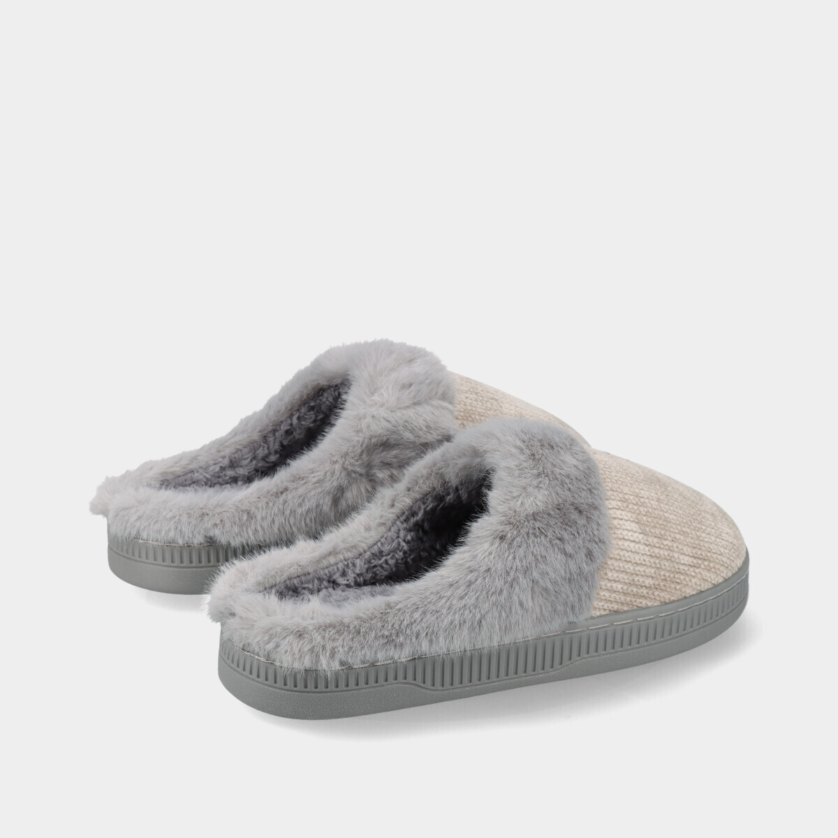 Chinelos de quarto em cinza para mulher, muito leves, confortáveis e flexíveis, com forro de pelo, ideais para os dias frios e para manter os pés quentes.