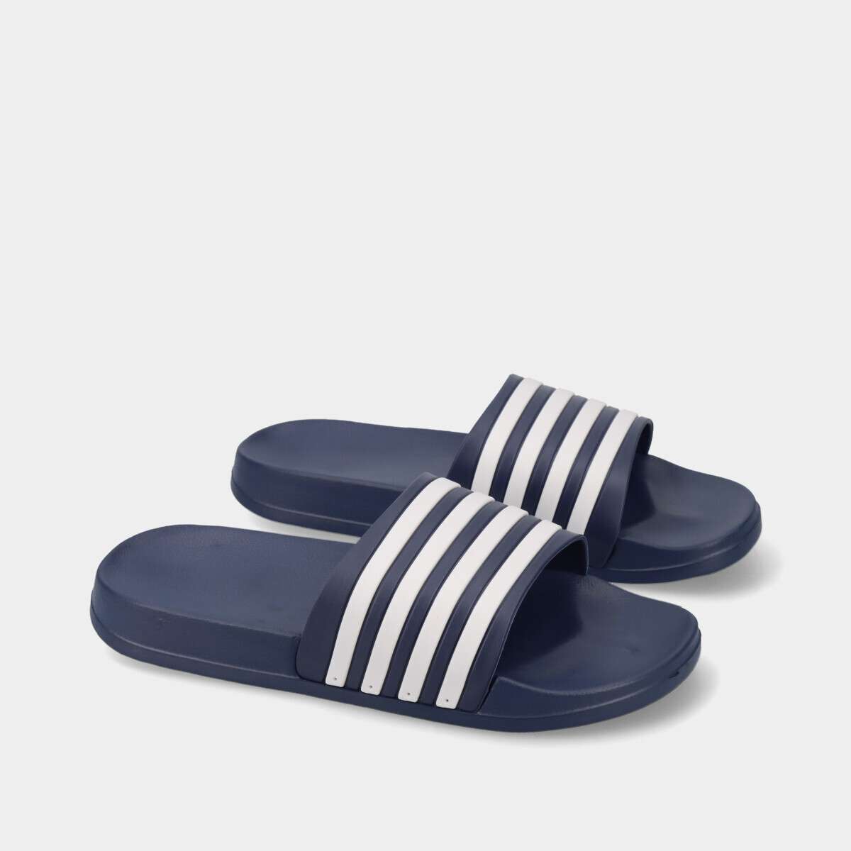 Chinelo de pala para homem e mulher, na cor azul com riscas brancas. Leve e confortável, ideal para piscina, praia ou uso diário.