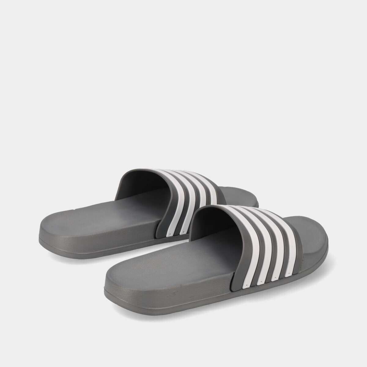 Chinelo de pala para homem e mulher, na cor cinza com riscas brancas. Leve e confortável, ideal para piscina, praia ou uso diário.