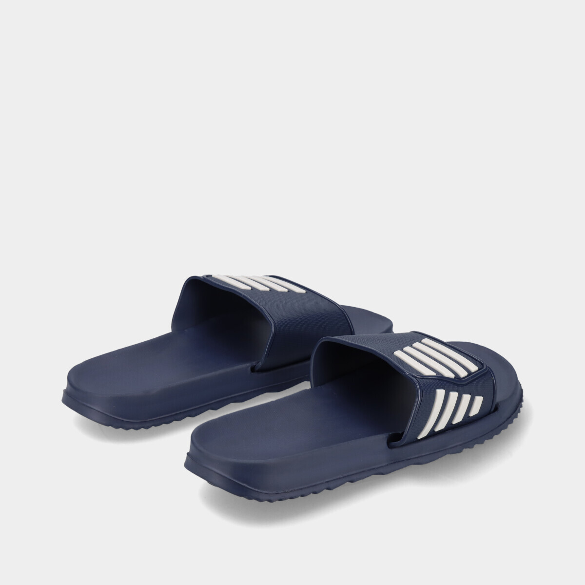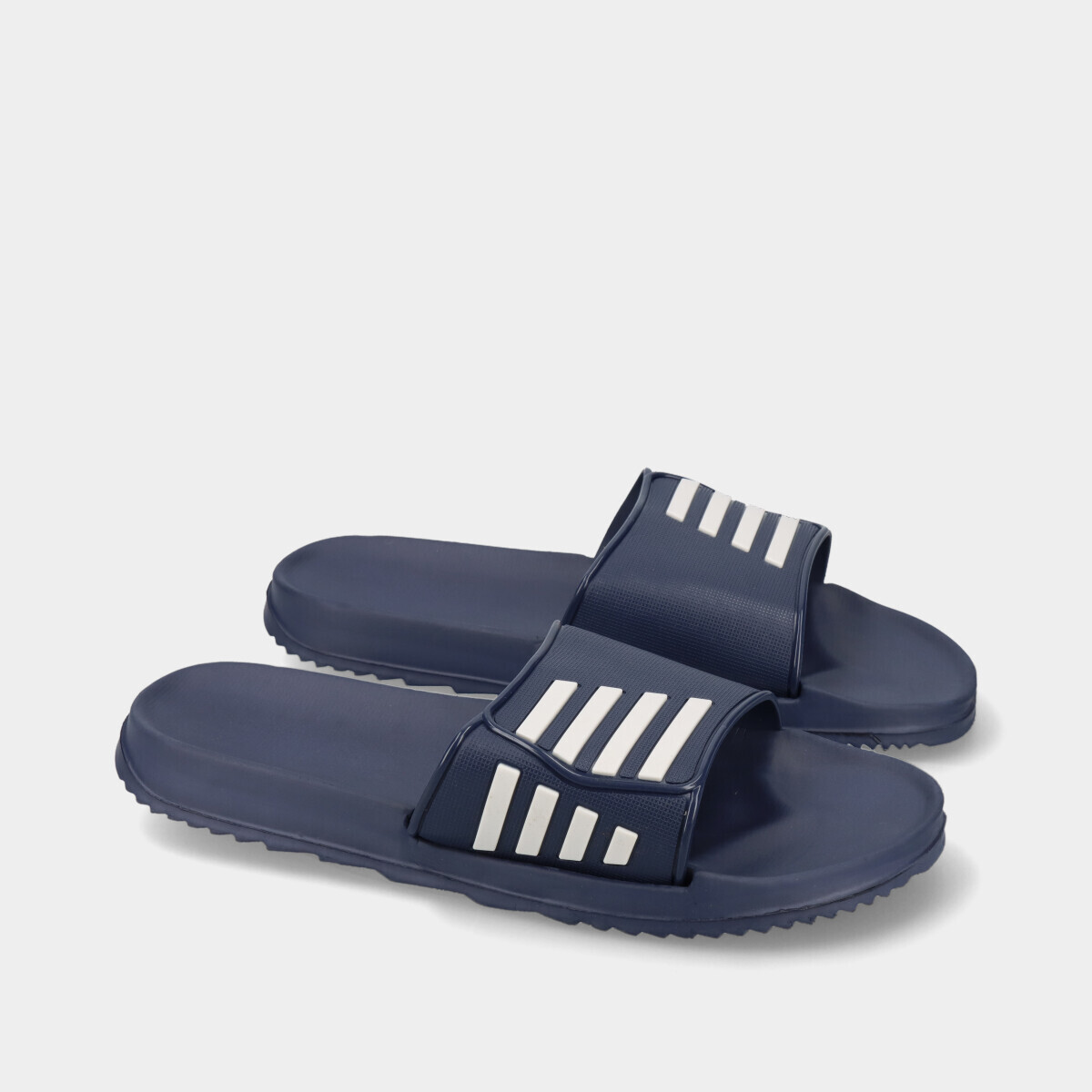 Chinelo de pala para homem, na cor azul com riscas brancas. Leve e confortável, ideal para piscina, praia ou uso diário.