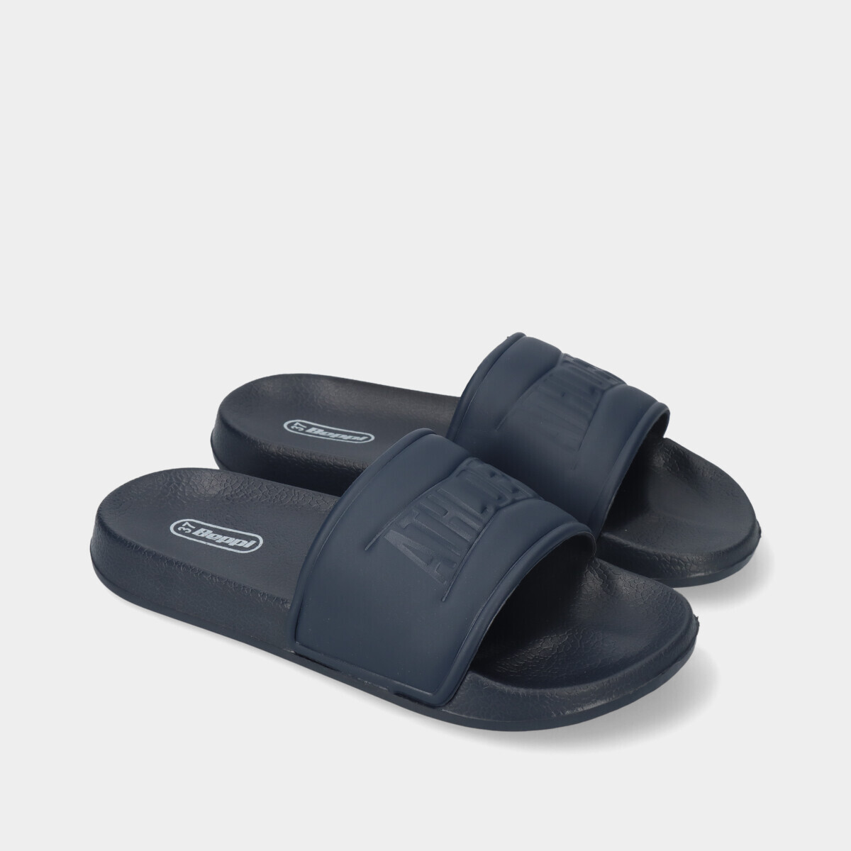 Chinelo azul com a bandeira do Brasil, leve e confortável. Design unissexo ideal para os dias quentes de verão.