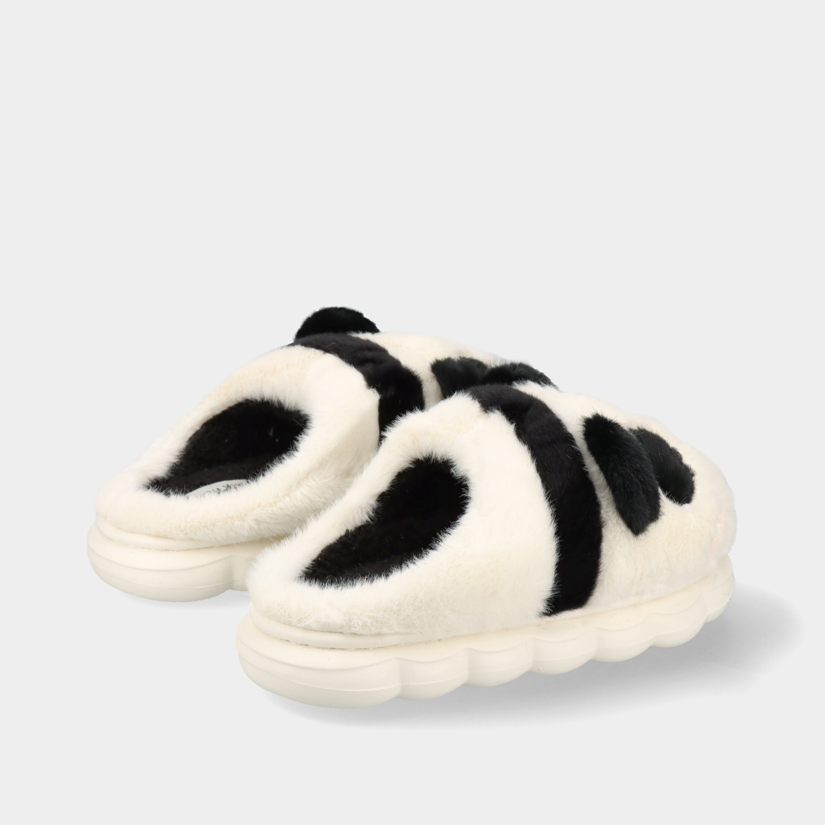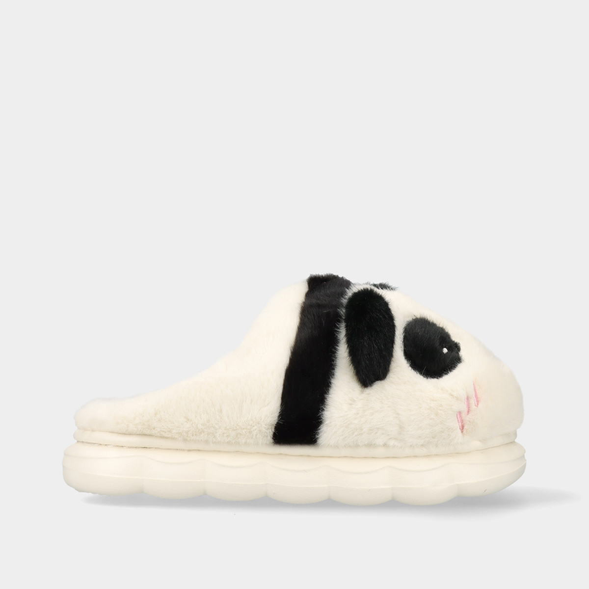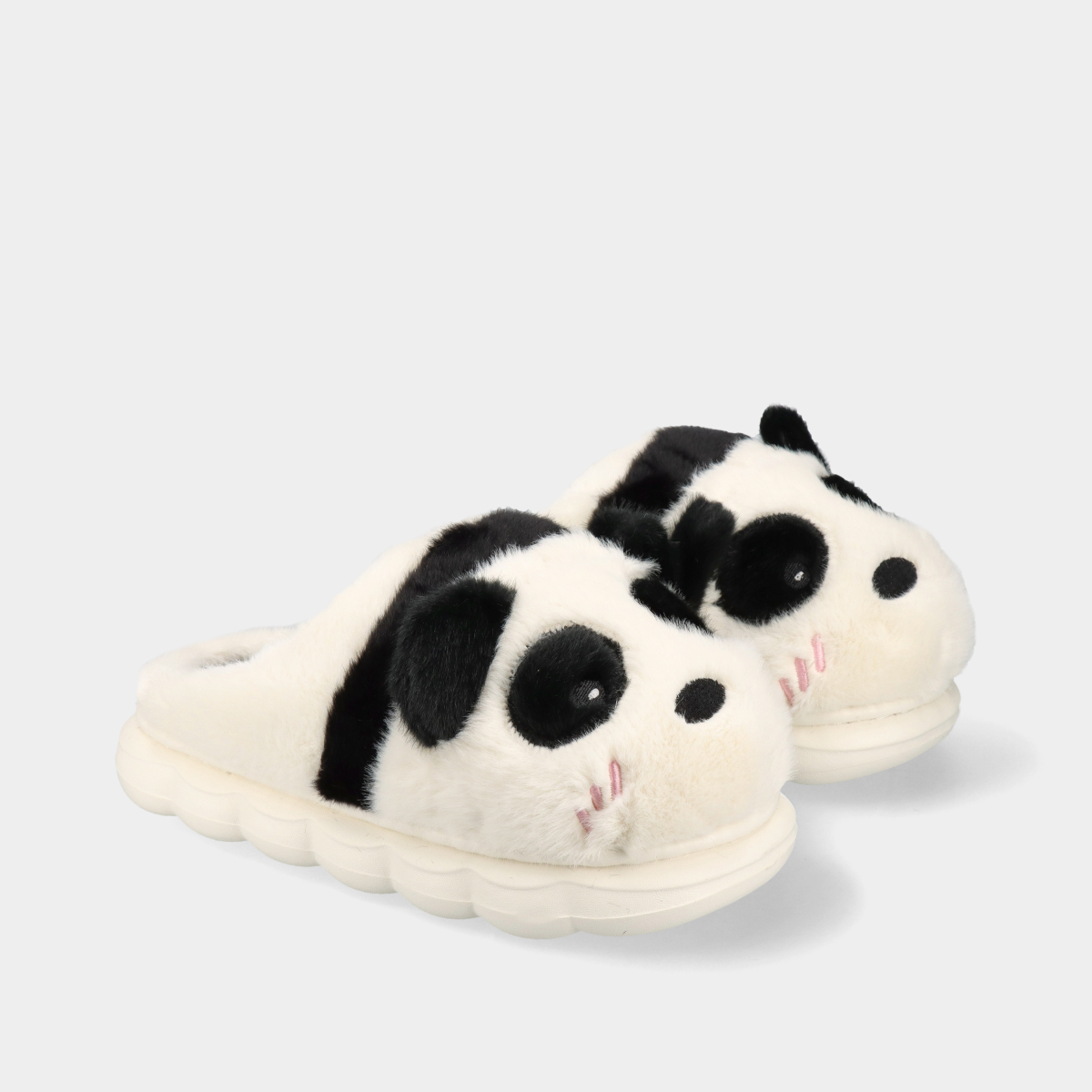 Chinelos slippers memory de peluche branco e preto em forma de panda para criança, muito leves, confortáveis e flexíveis, com forro de pelo, ideais para os dias frios e para manter os pés quentes.