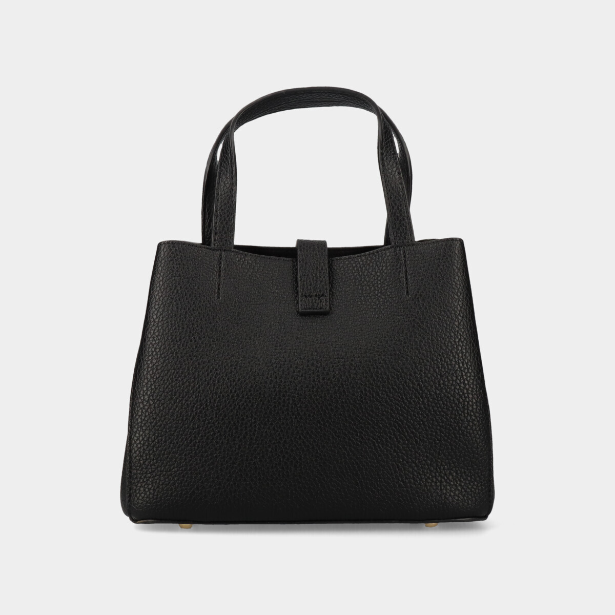 Mala de mão preta com textura, penduro removível, diversos compartimentos com fecho de correr e tira com fecho de íman. Inclui alça tiracolo, ajustável e removível.