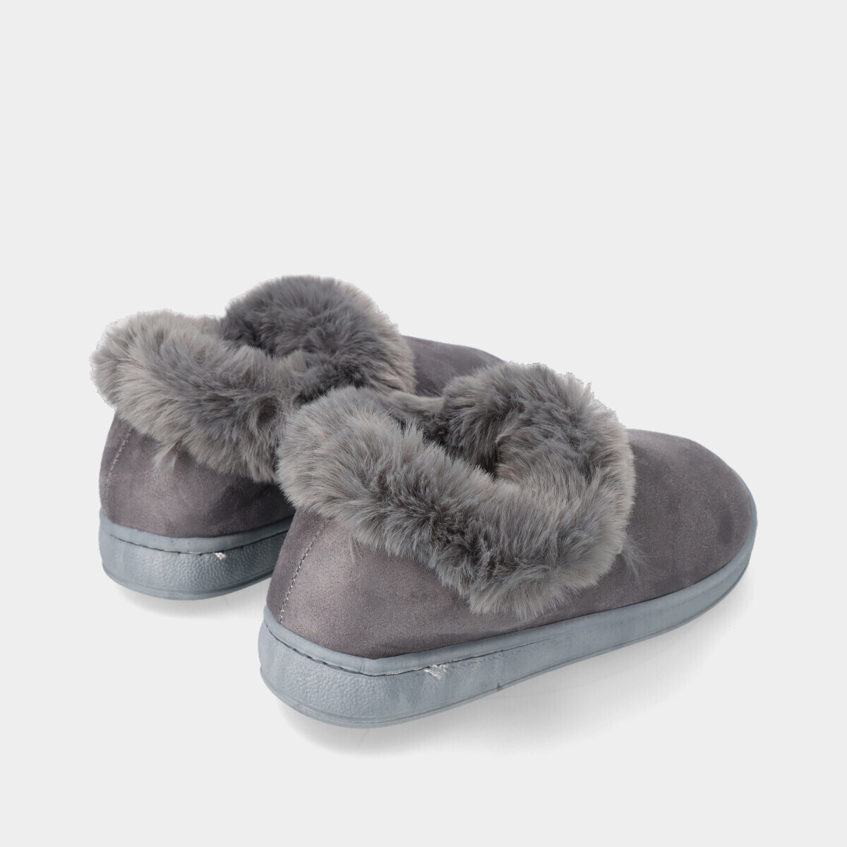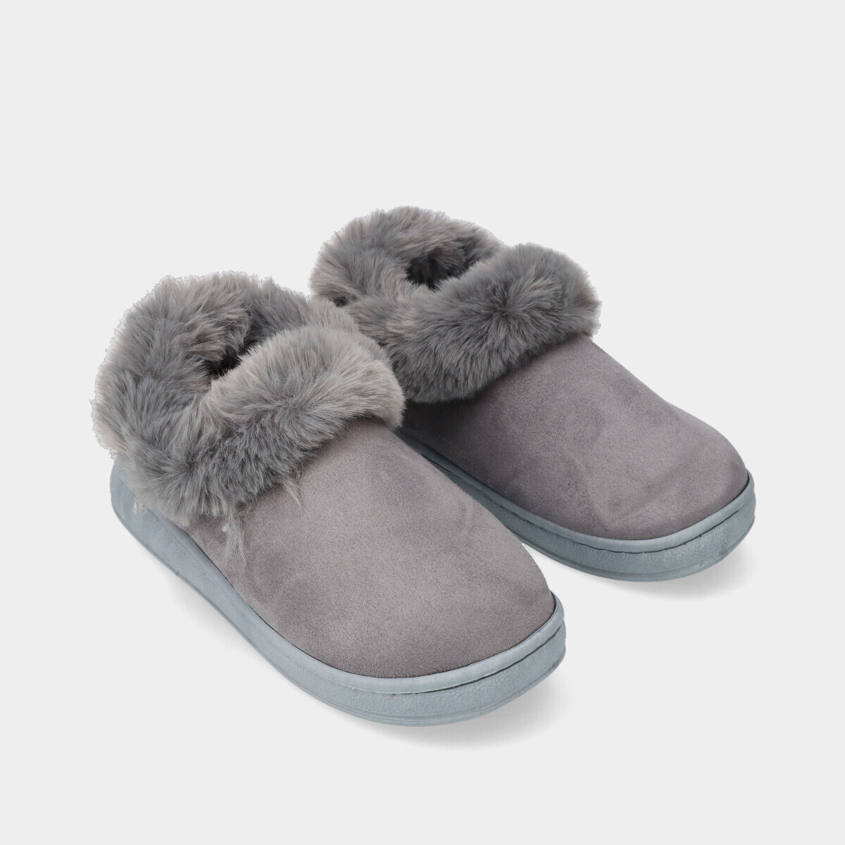 Desfrute do máximo conforto com as nossas novas pantufas com pêlo, agora disponíveis numa tonalidade cinzenta para homem.