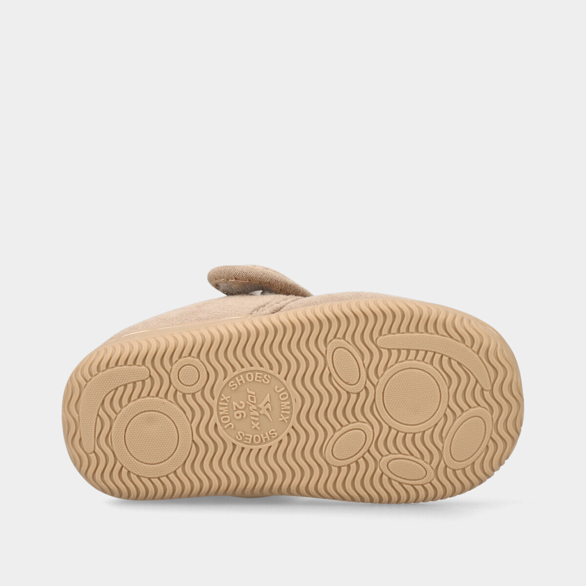 Pantufas taupe para menino e menina, leves, flexíveis e confortáveis, com forro de pelo, ideais para os dias frios e para manter os pés quentes.