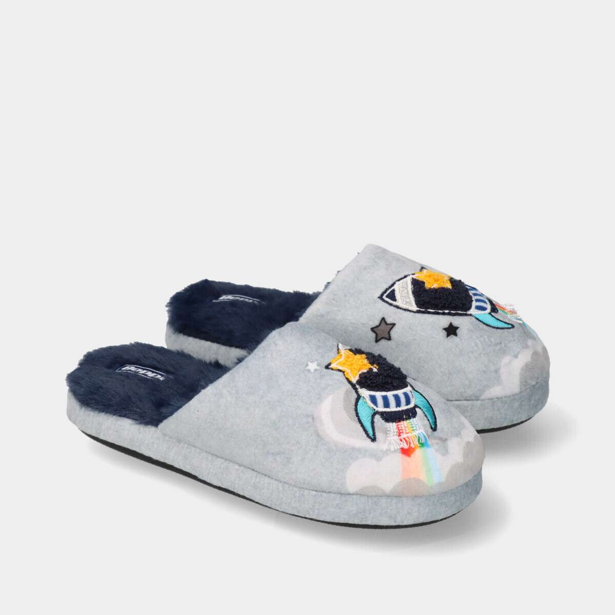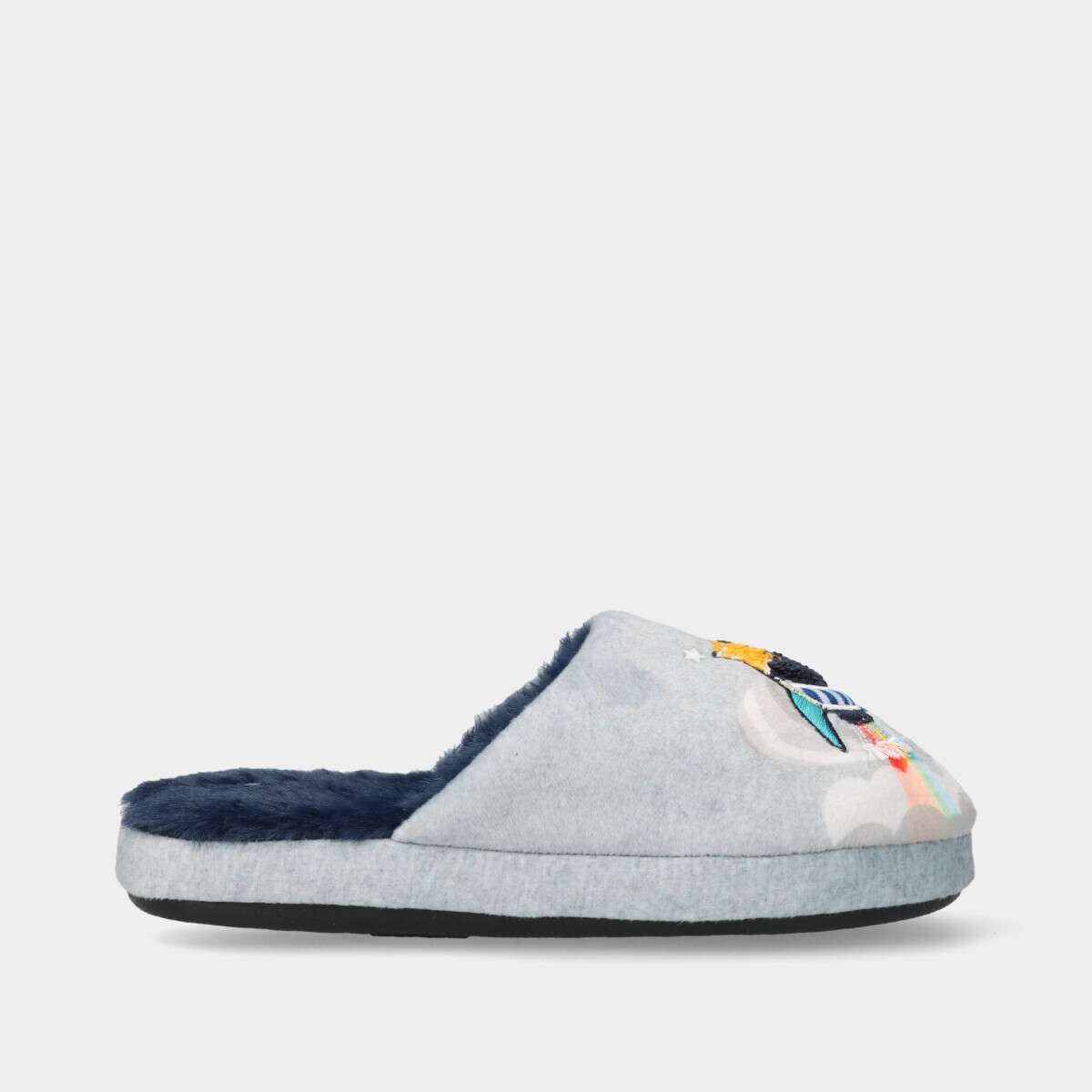 Pantufas azuis para menino com o Mickey Mouse, leves, flexíveis e confortáveis, com palmilha removível, ideais para os dias frios e para manter os pés quentes.