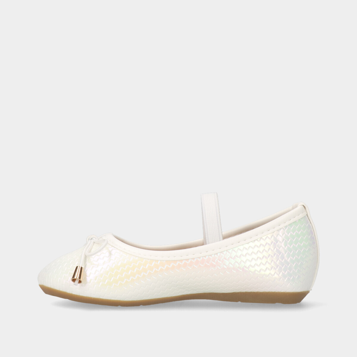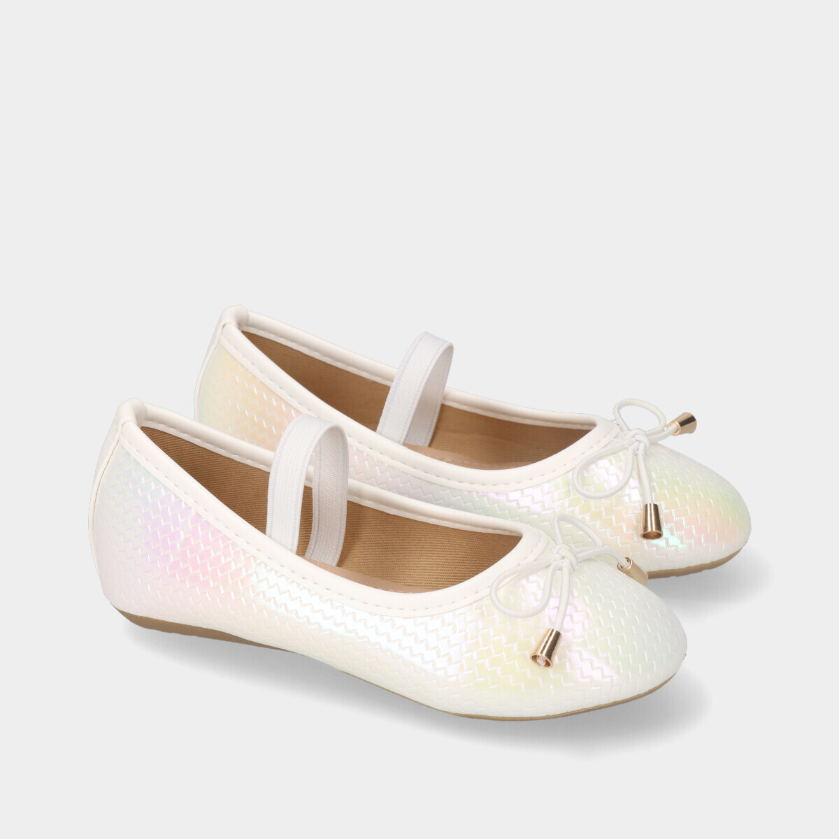 Apresentamos a sabrina Beppi na elegante cor branca, com um acabamento iridescente que adiciona um toque de brilho a qualquer look. Este modelo possui um elástico no peito do pé para garantir um ajuste perfeito e confortável, além de uma aplicação de um laço na parte frontal para um toque feminino e delicado. Versátil e charmosa, esta sabrina é perfeita para qualquer ocasião.