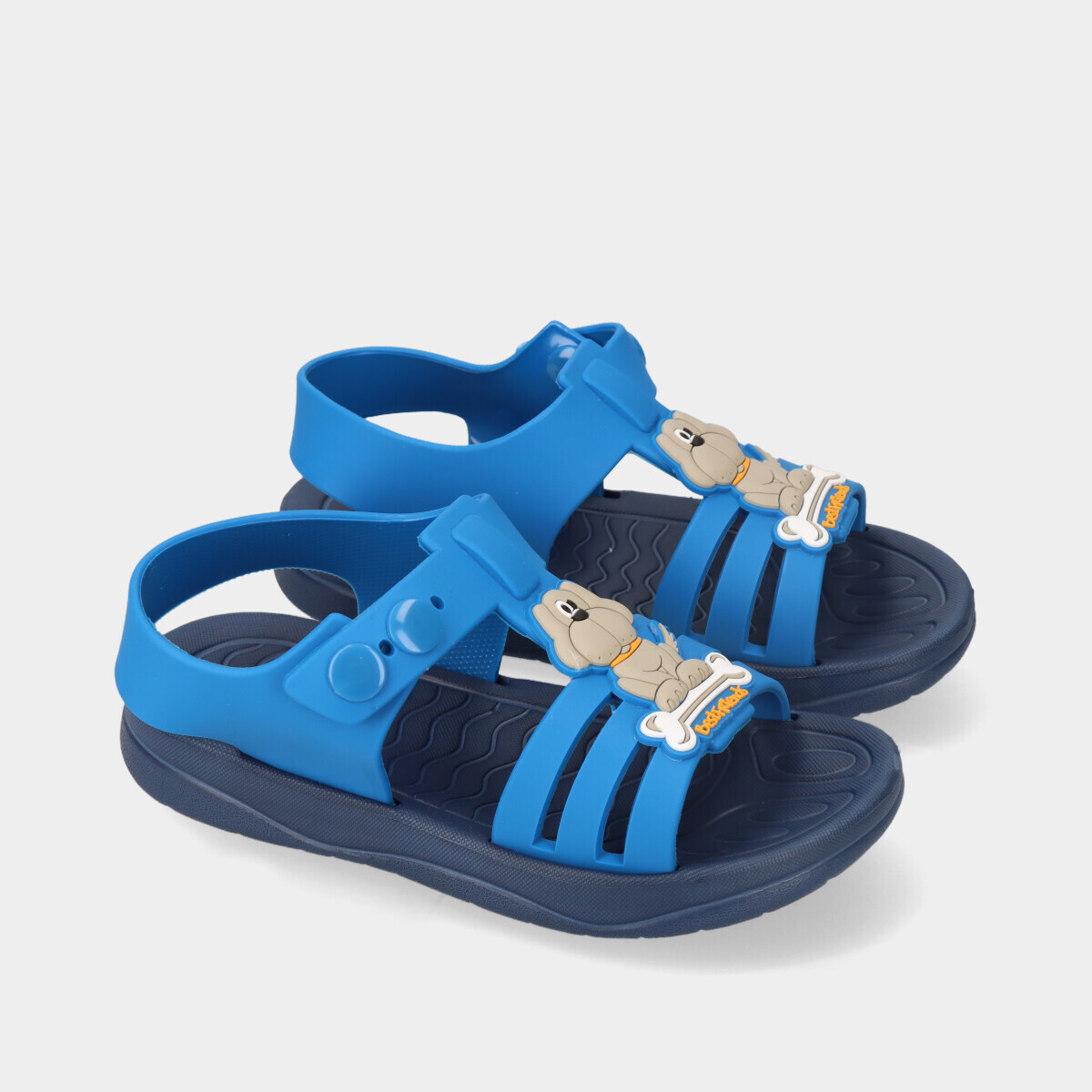 Práticas e confortáveis, estas sandálias Beppi na cor azul são perfeitas para os dias de Verão! Com mola lateral para ajustar e uma aplicação divertida no peito do pé.