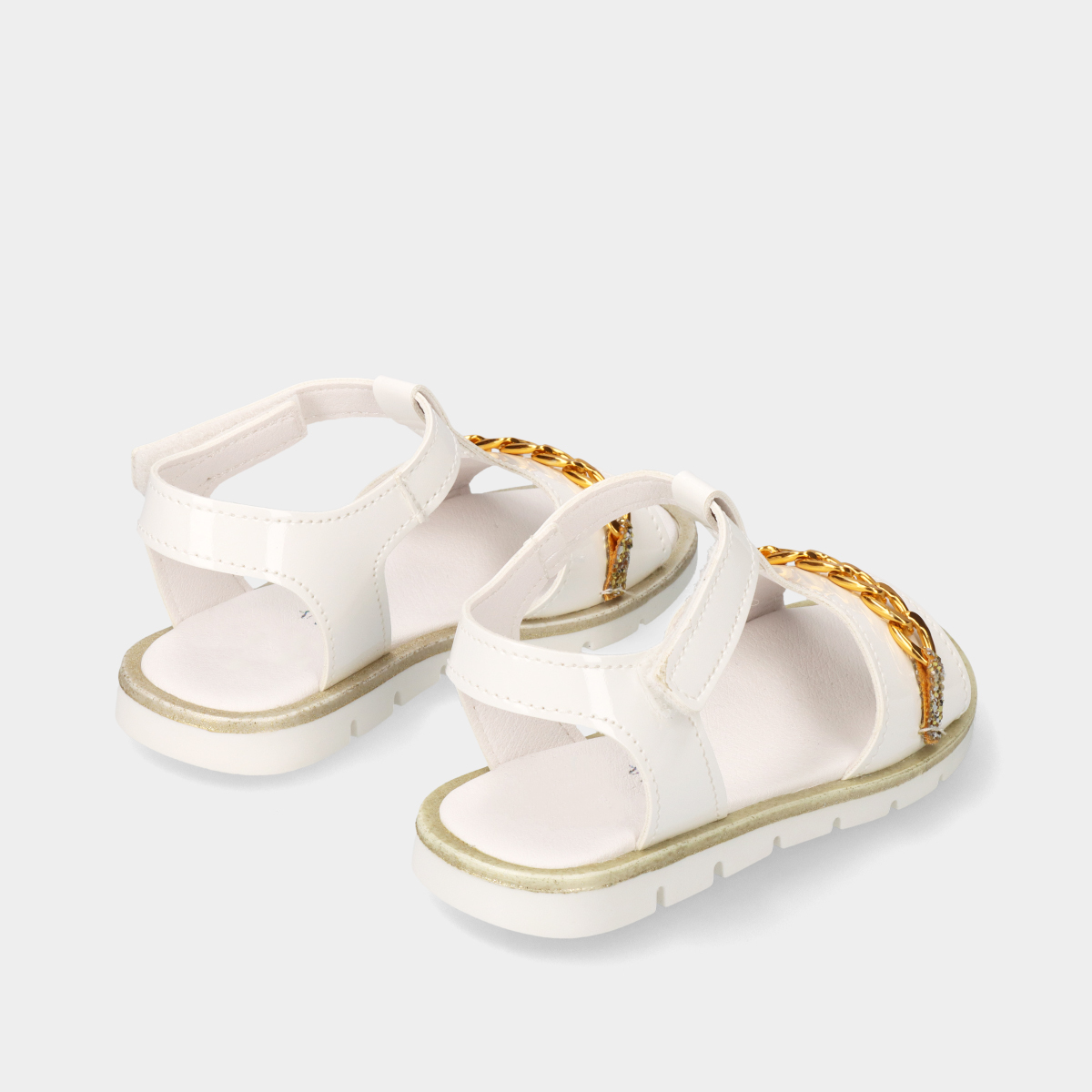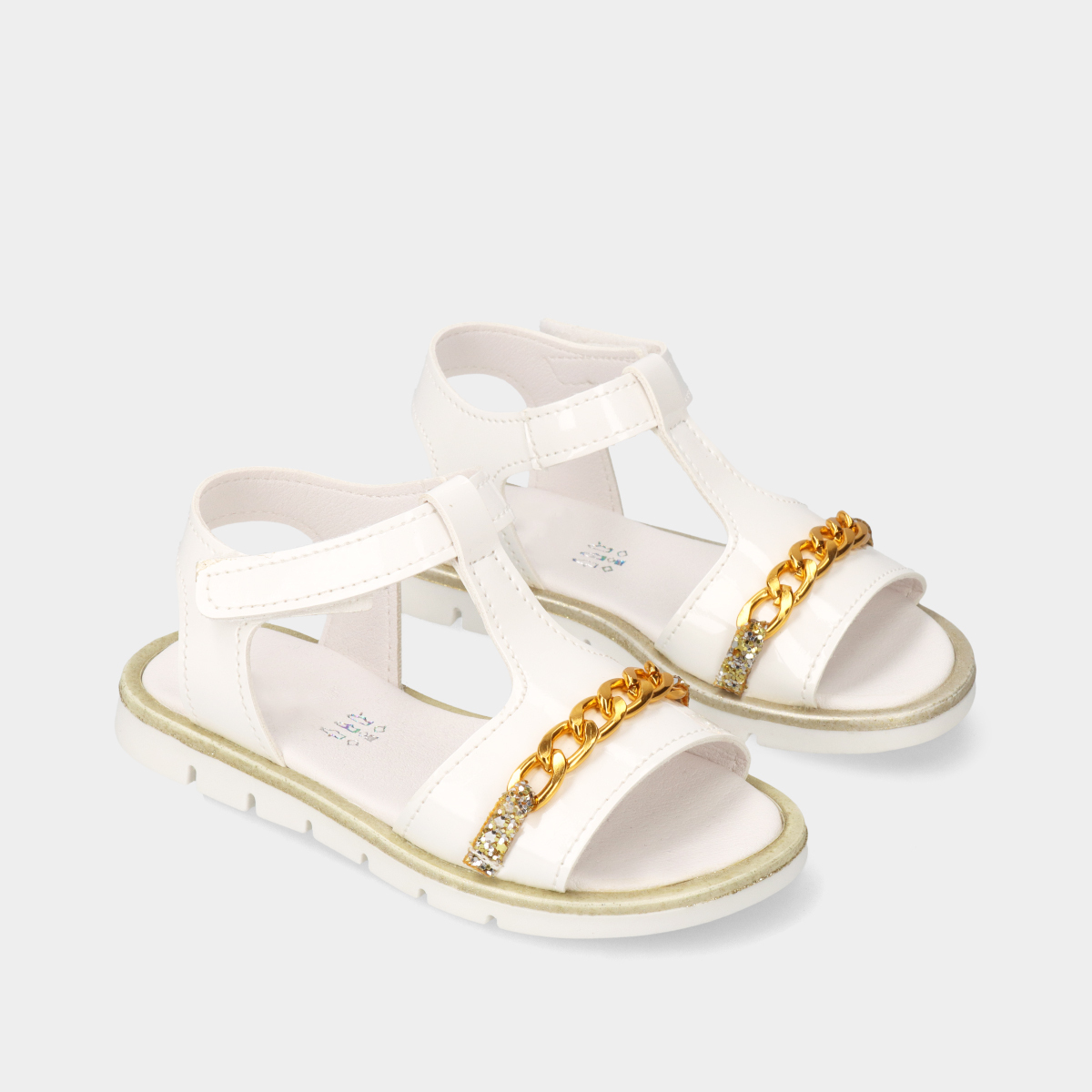 A sandália que vai ser a sua aliada favorita nesta primavera-verão! Design inovador com uma aplicação deslumbrante de corrente no peito do pé.