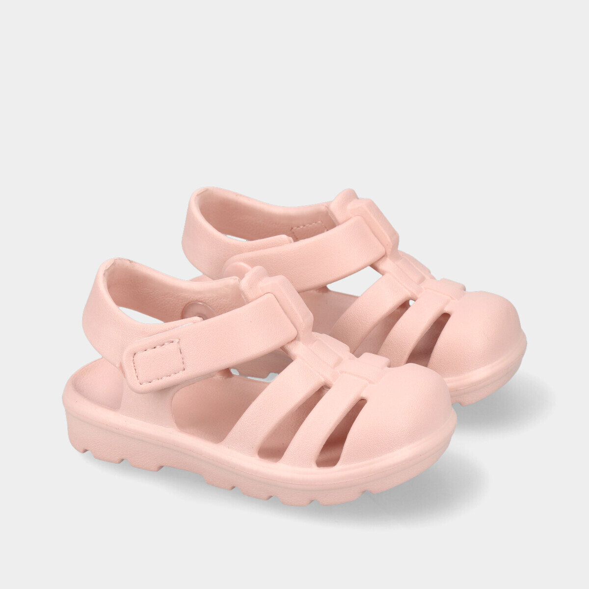 Sandálias rosa de borracha para menina, leves e confortáveis, com sola com relevo para melhor aderência e fecho de velcro na lateral. Ideais para verão, praia, piscina, passeios e uso diário, garantindo praticidade, conforto e facilidade ao calçar.