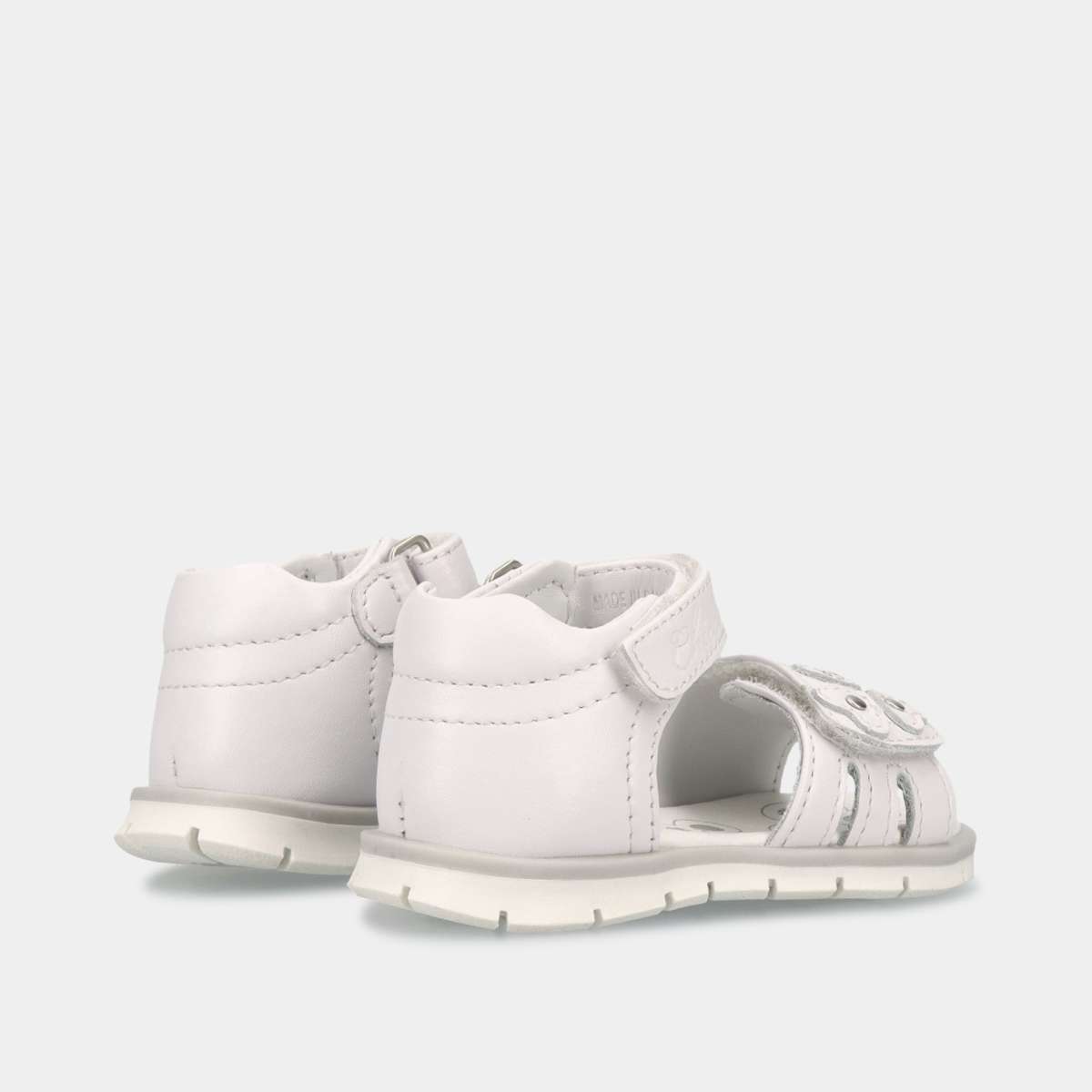 Sandália de bebé menina em branco, fresca, leve e perfeita para os dias quentes de verão e cerimónias! Descubra o conforto e a segurança ideais para os primeiros passos.